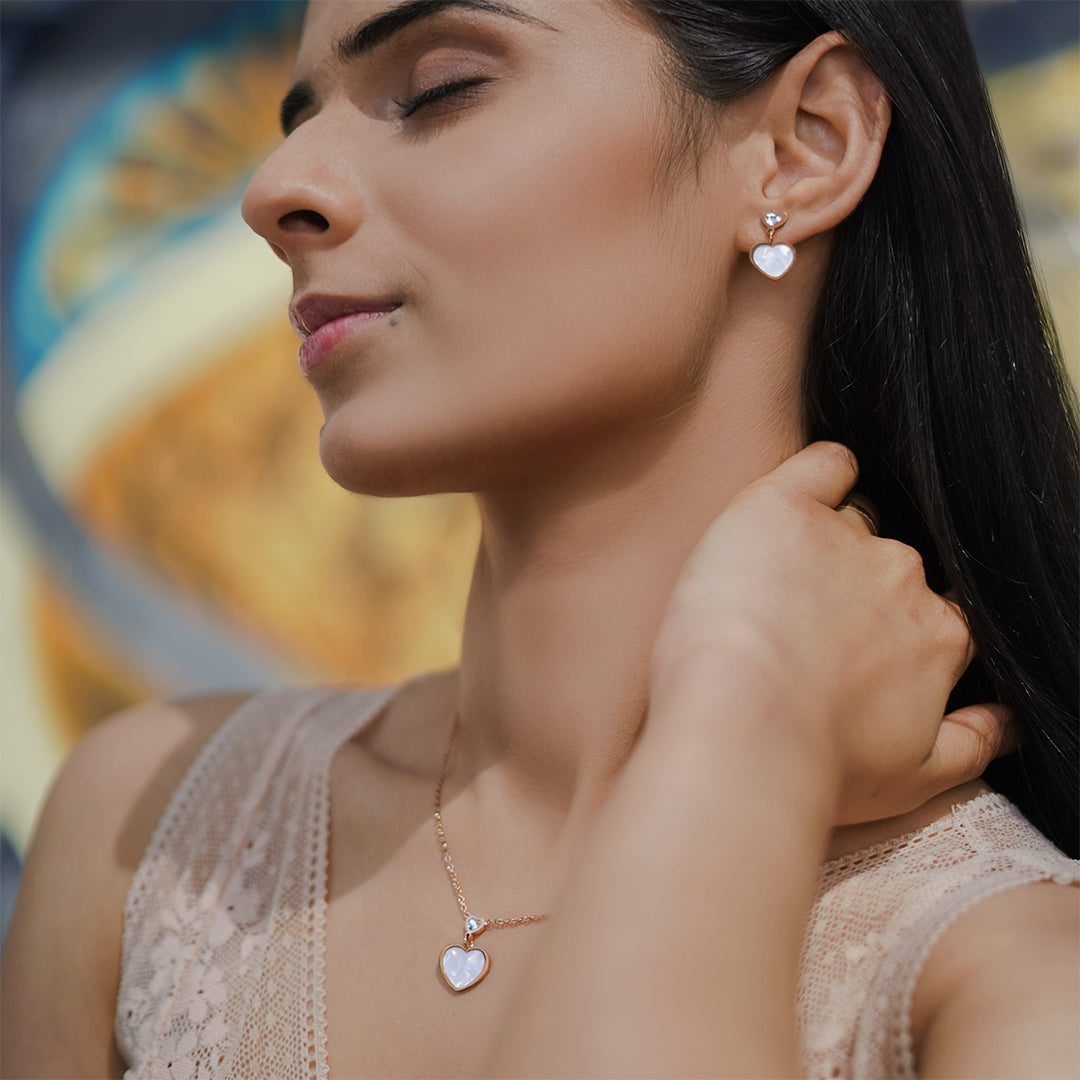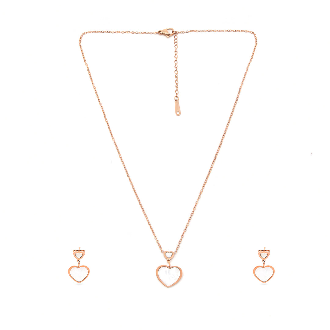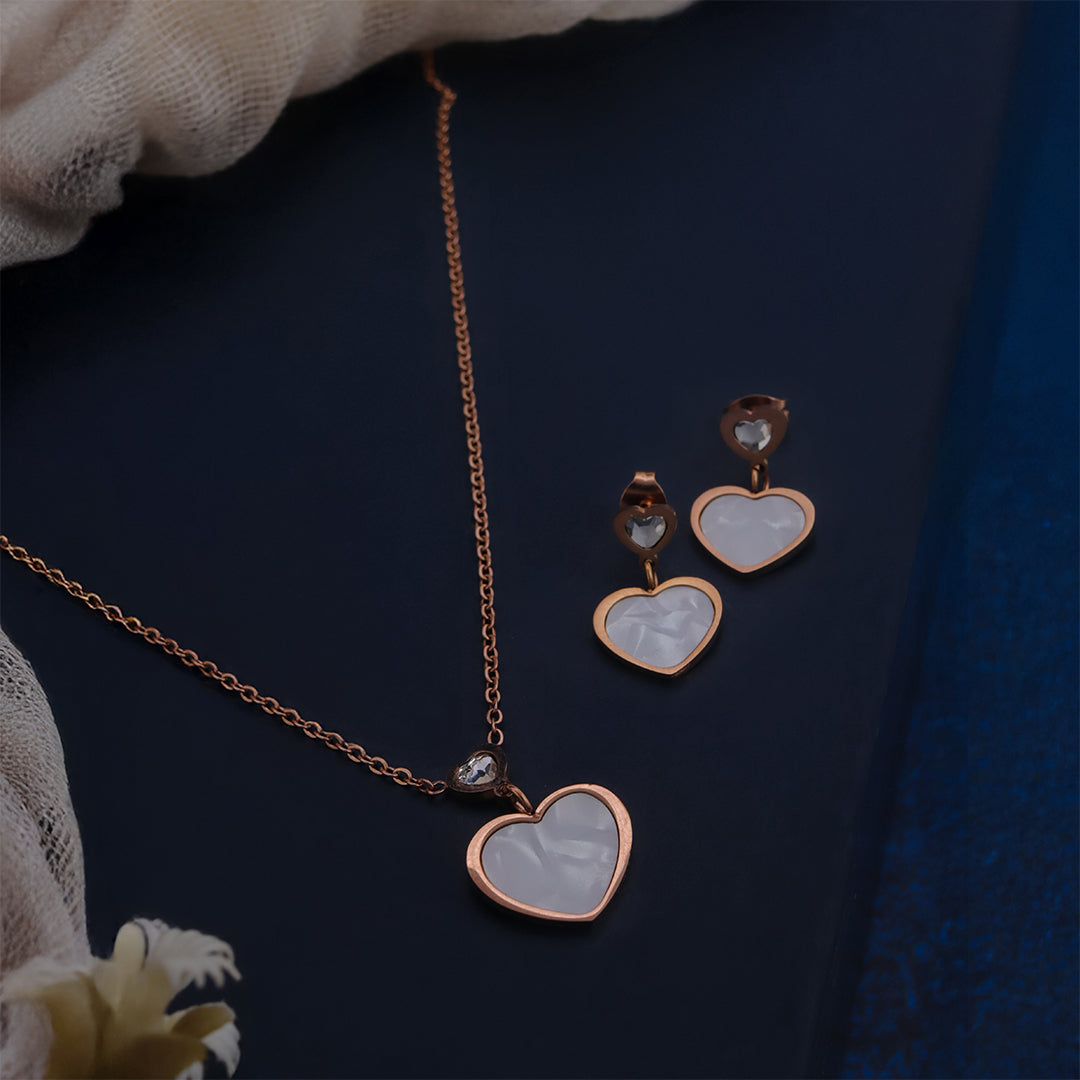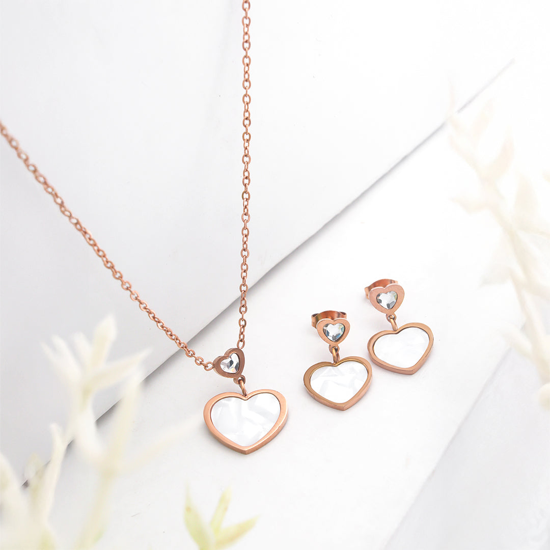 Amoura Set – Rose Gold Heart Necklace & Earrings