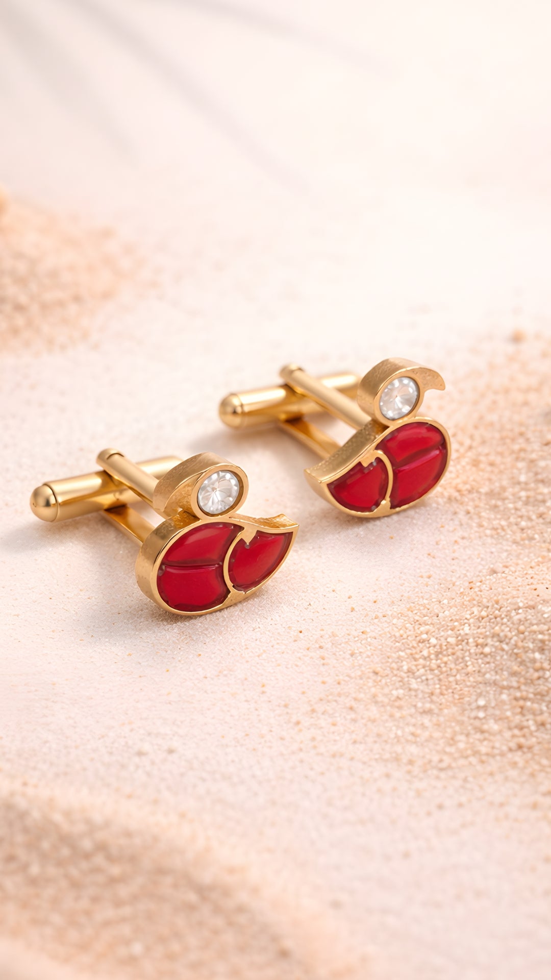 Style: Abstract Modern | Color: Red & Matte GoldInspired by modern art and organic forms, the Art Nouveau Flame Cufflinks...