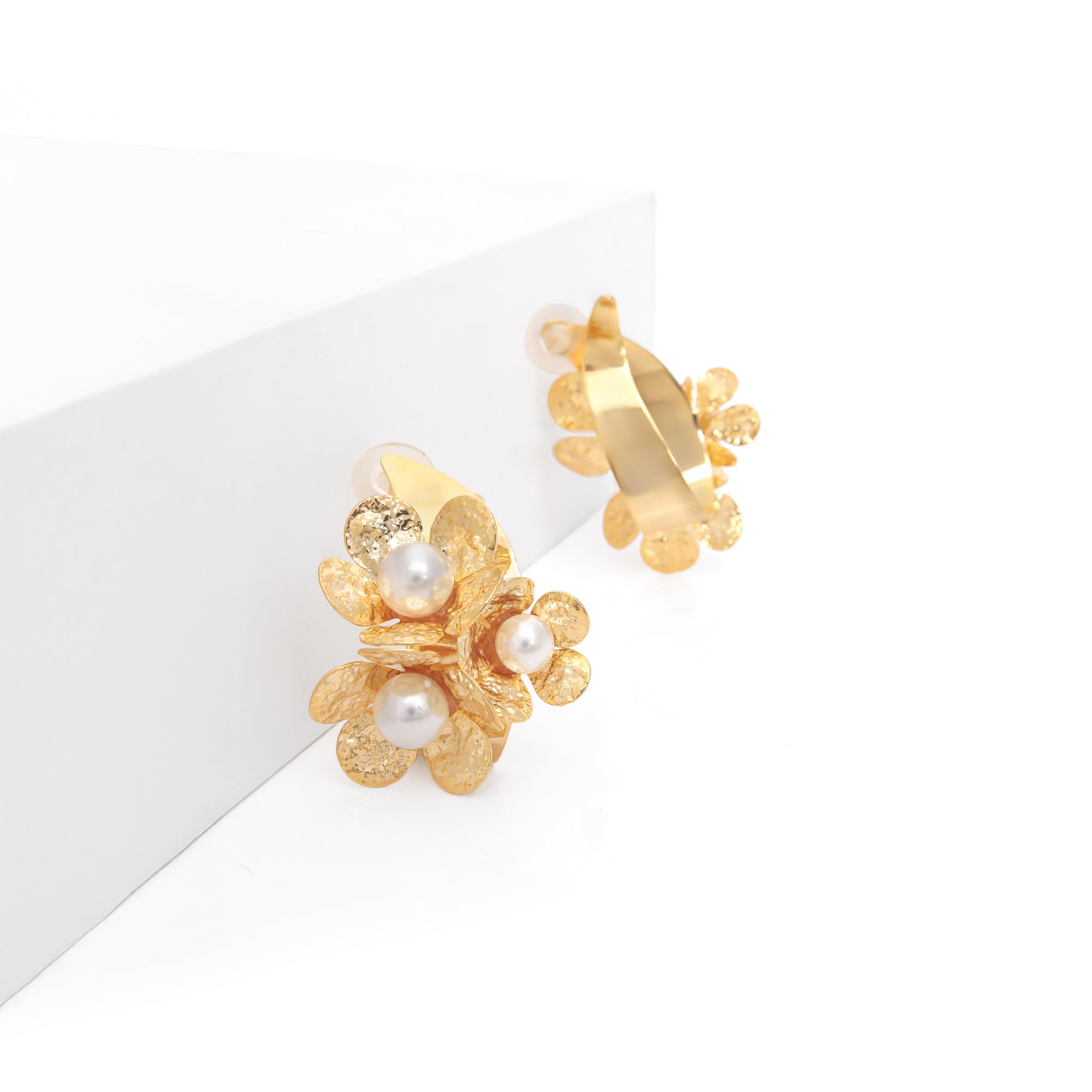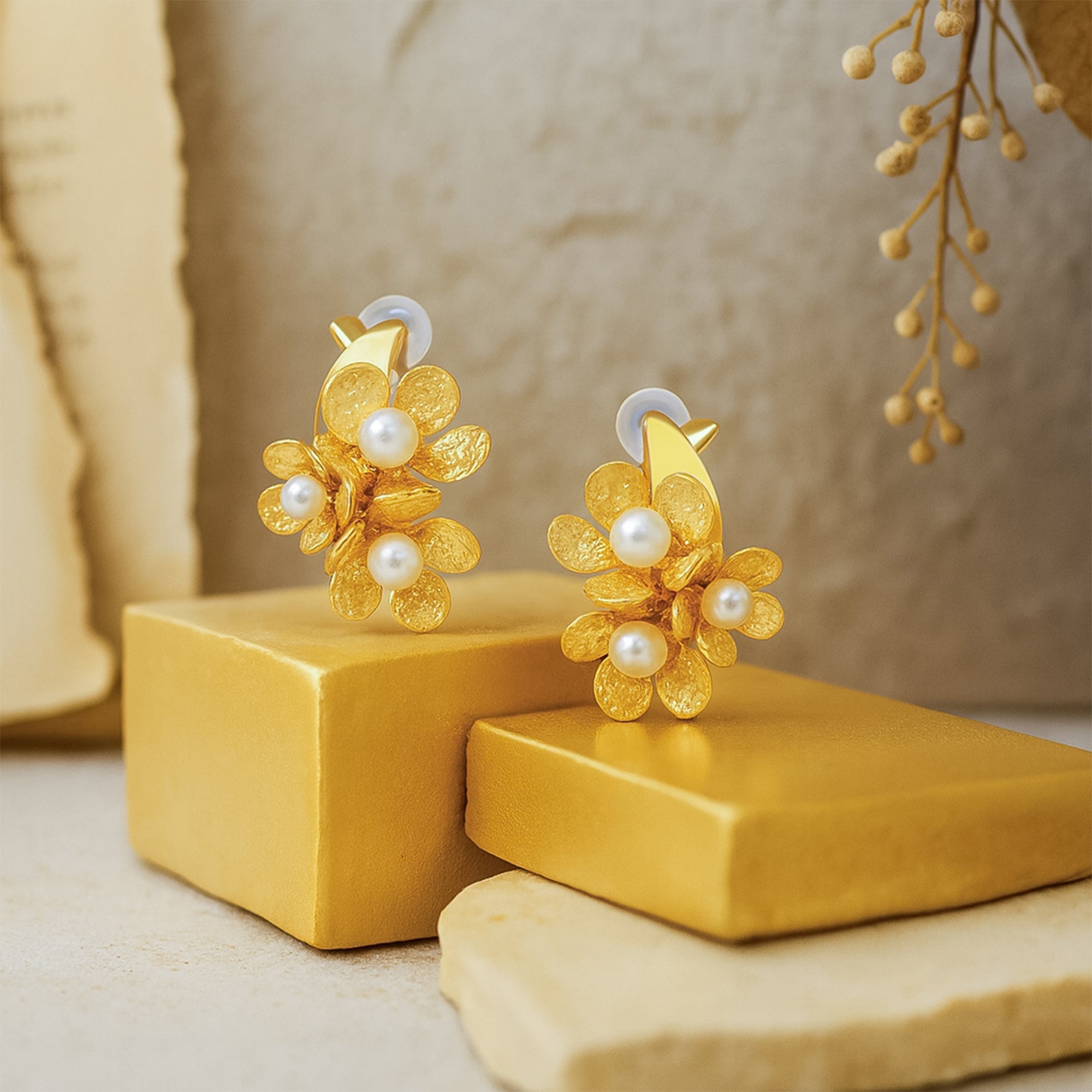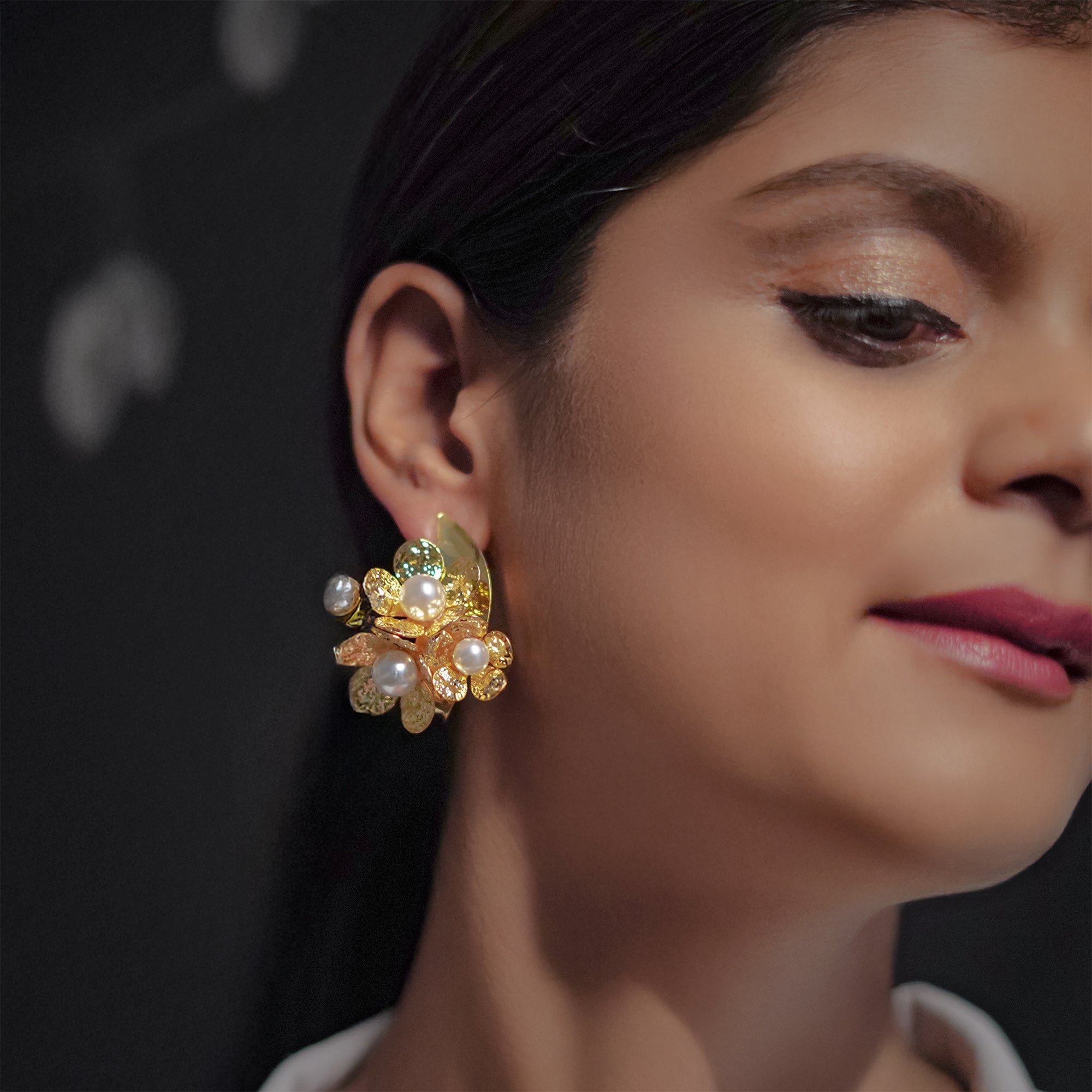 The Blooming Pearl Petal Earrings combine artistry and femininity. Featuring textured golden petals arranged into a bloom and highlighted with...