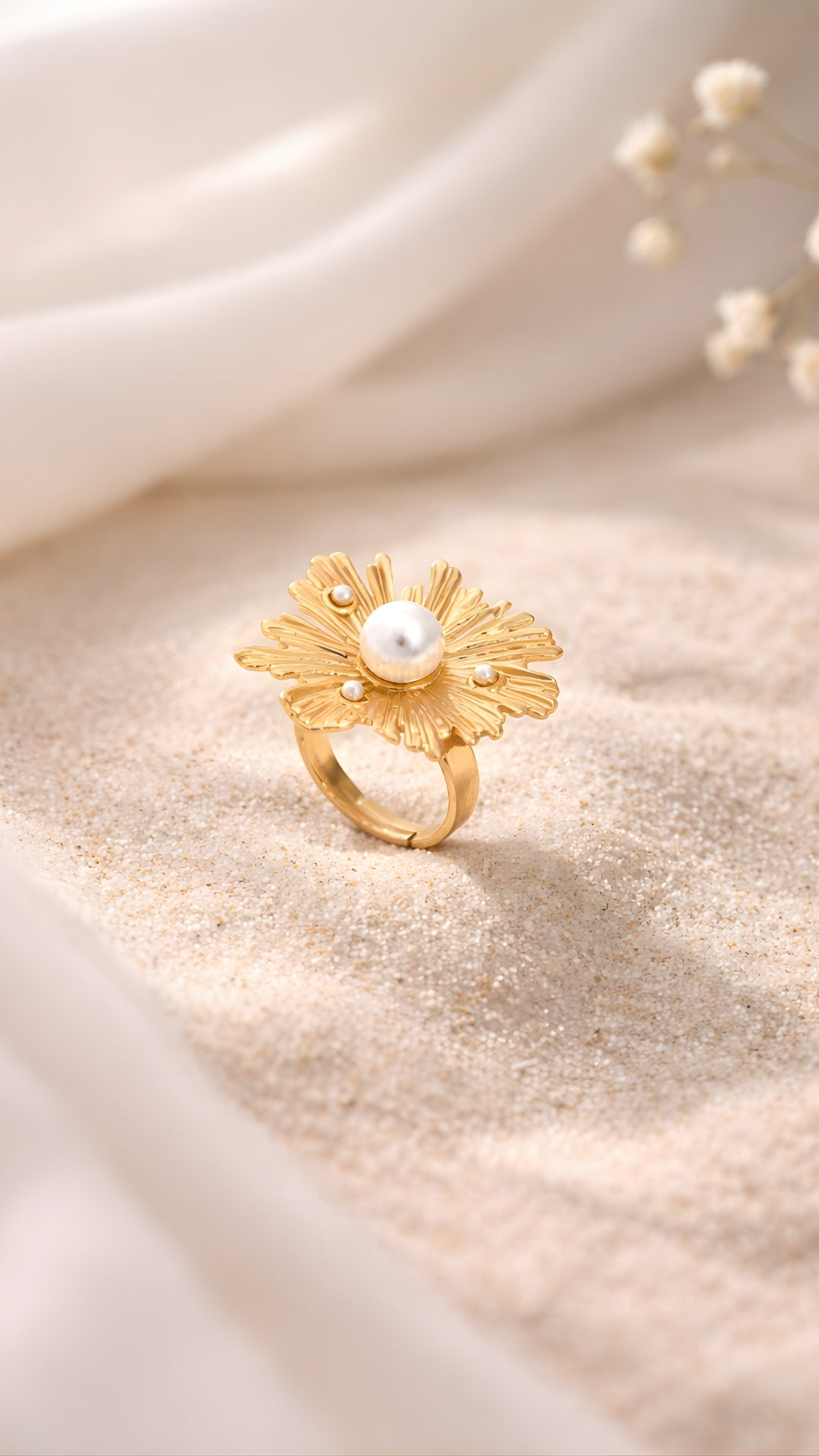 Blossom Pearl Statement Ring Inspired by rich botanical textures, the Blossom Pearl Statement Ring features detailed sculpted petals surrounding a...