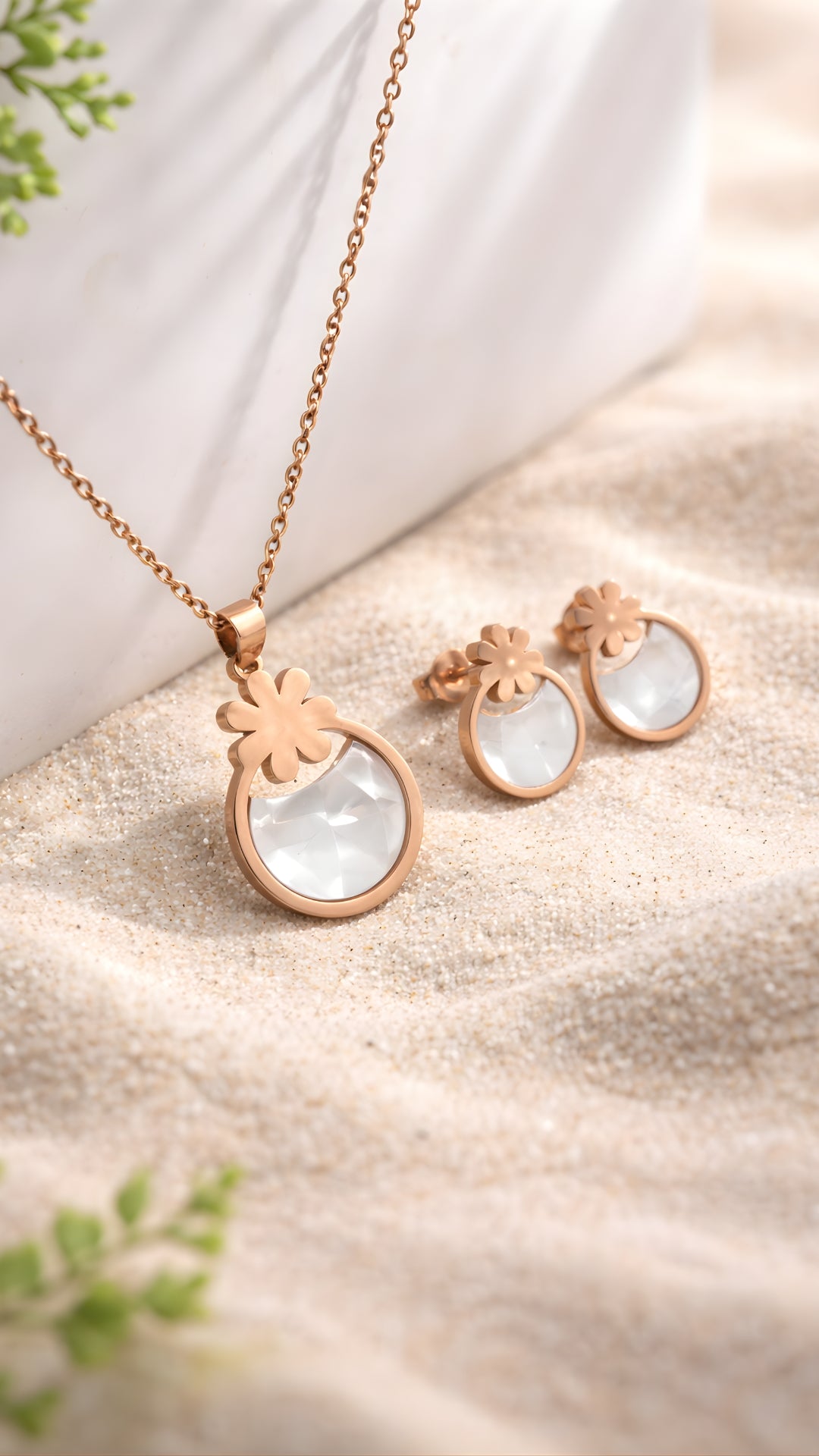 Minimalist charm meets playful elegance in the Blush Bloom Set from our Elite Collection. Featuring a delicate round pendant in...
