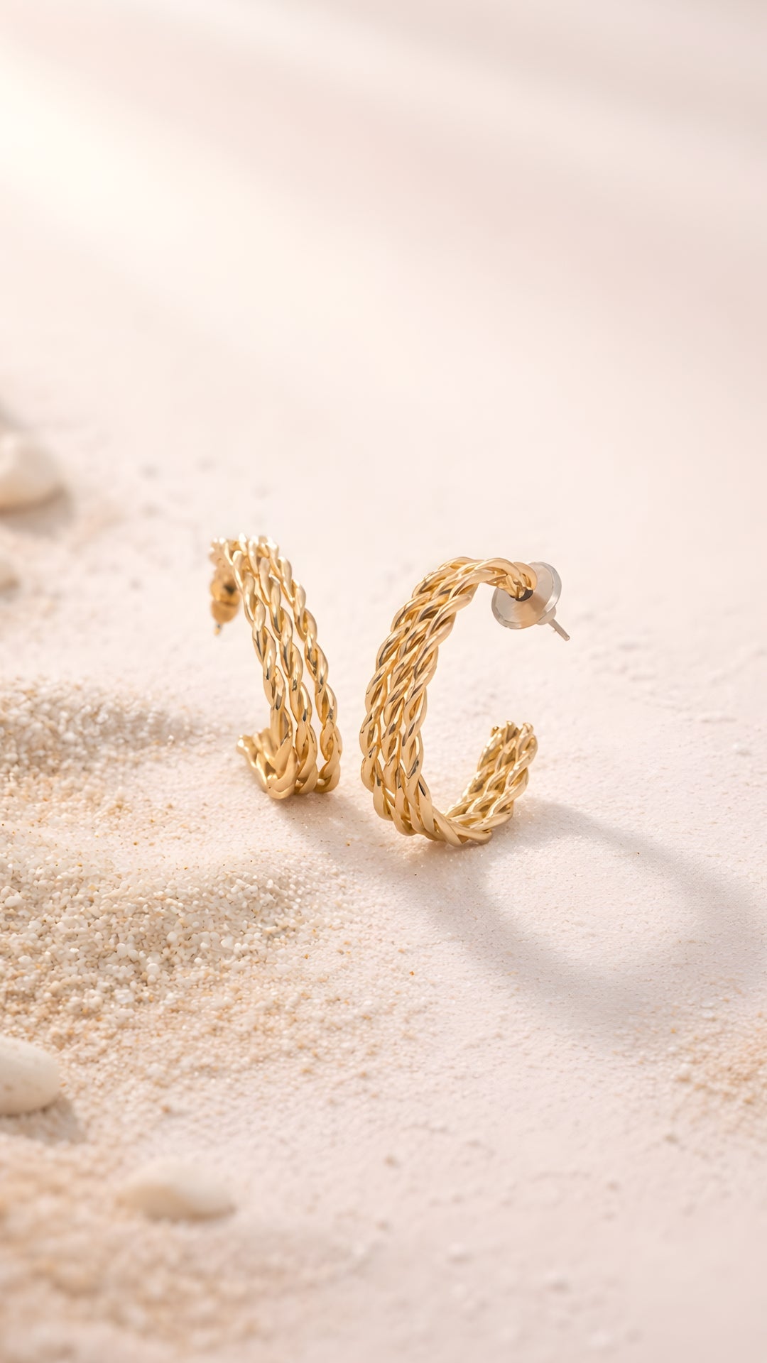 The Braided Gold Hoops feature an intertwined design that adds richness and depth to a classic hoop style. With a...
