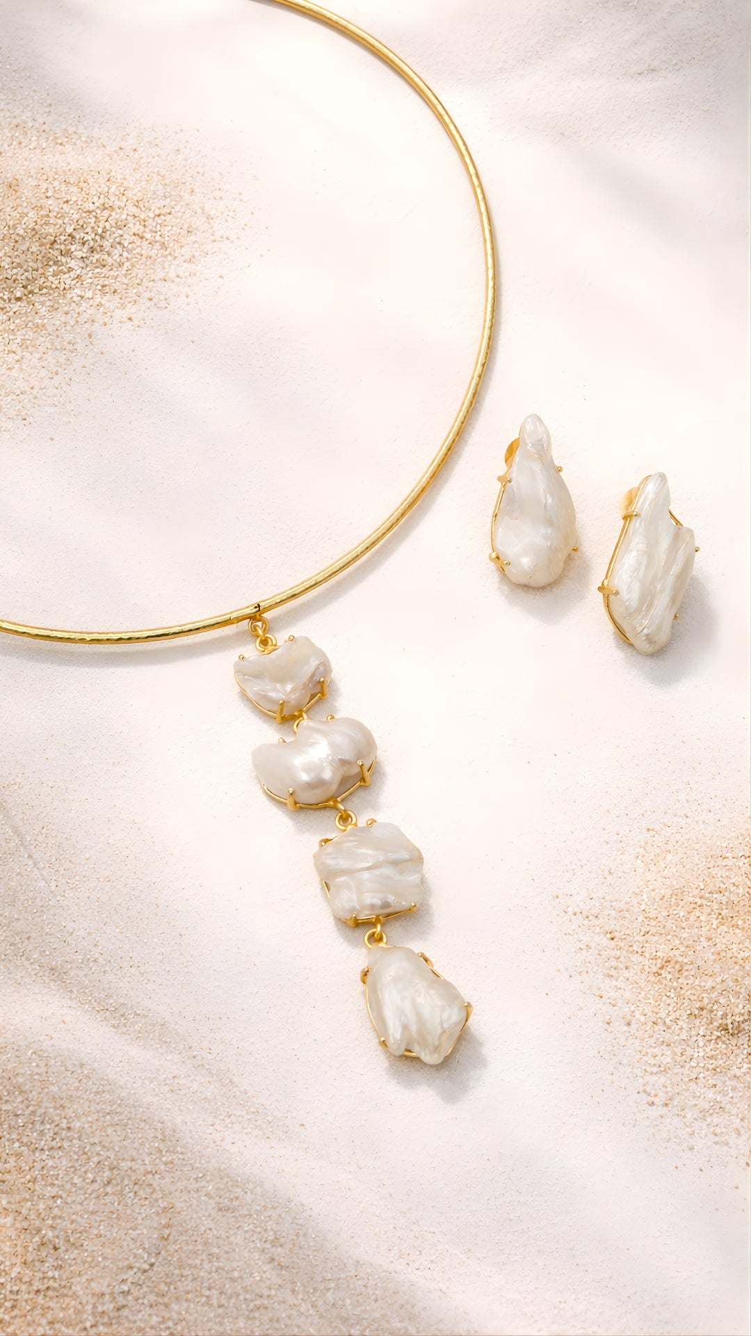 A breathtaking expression of minimal luxury, the Celeste Pearl Set features a choker-style necklace with cascading baroque-inspired pearls and matching...