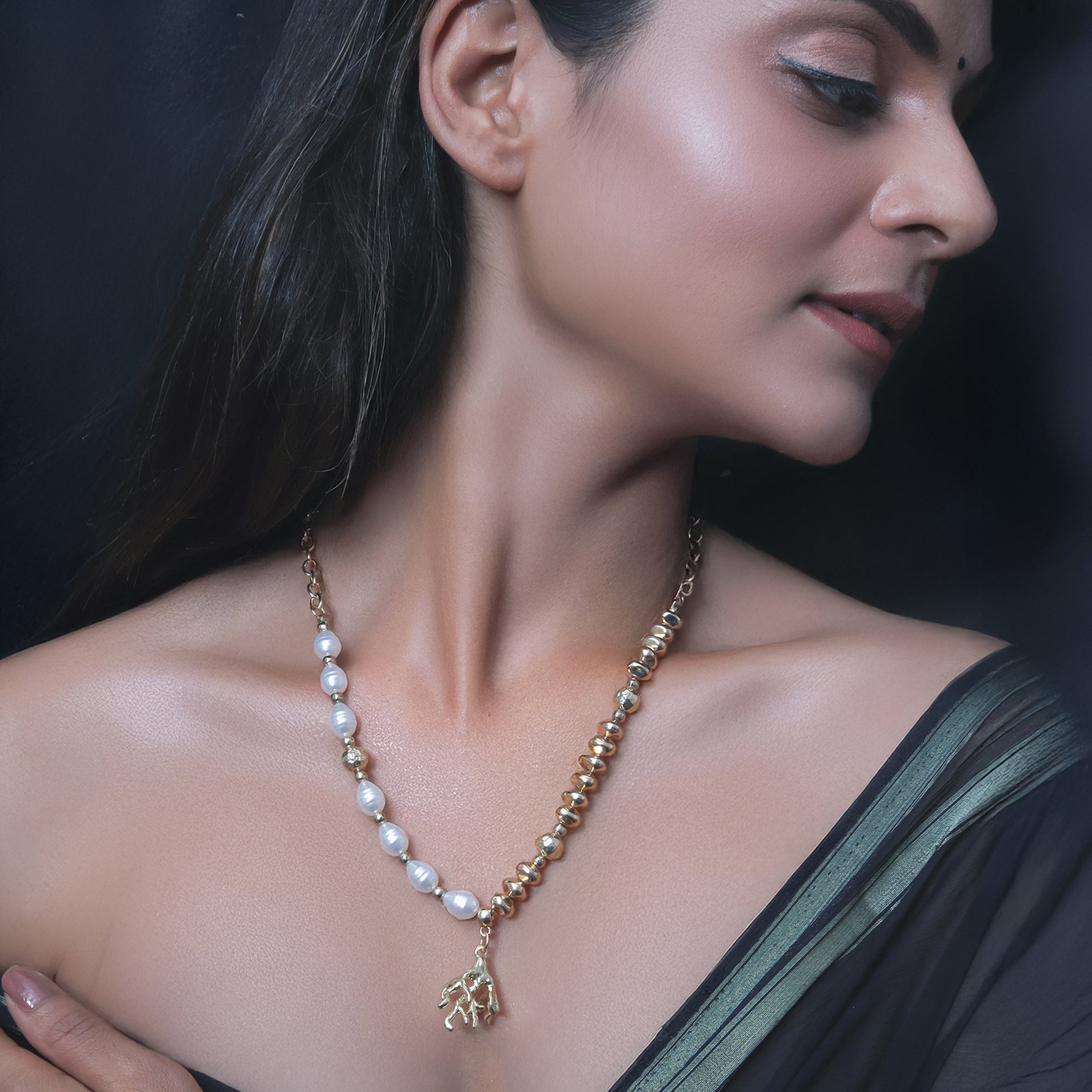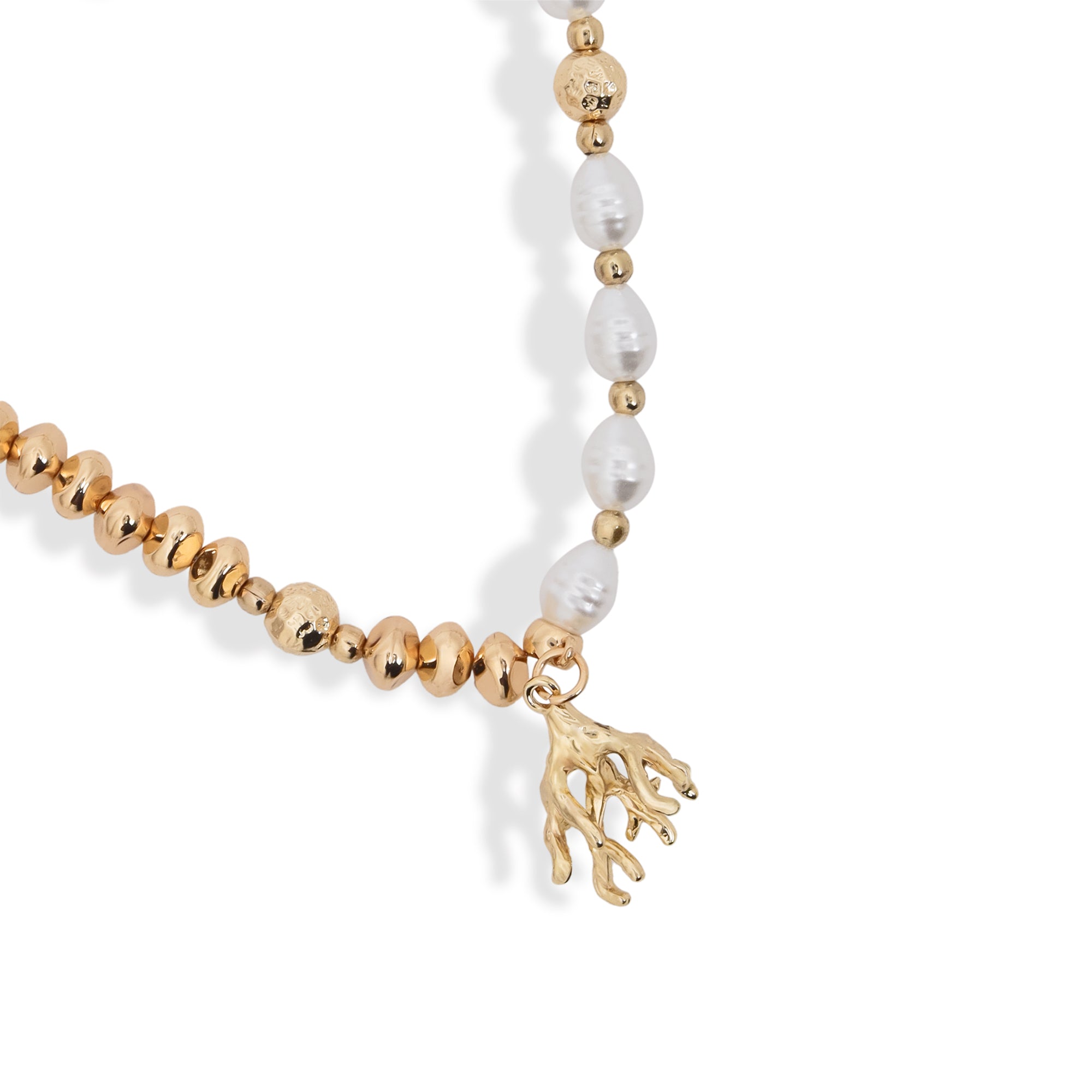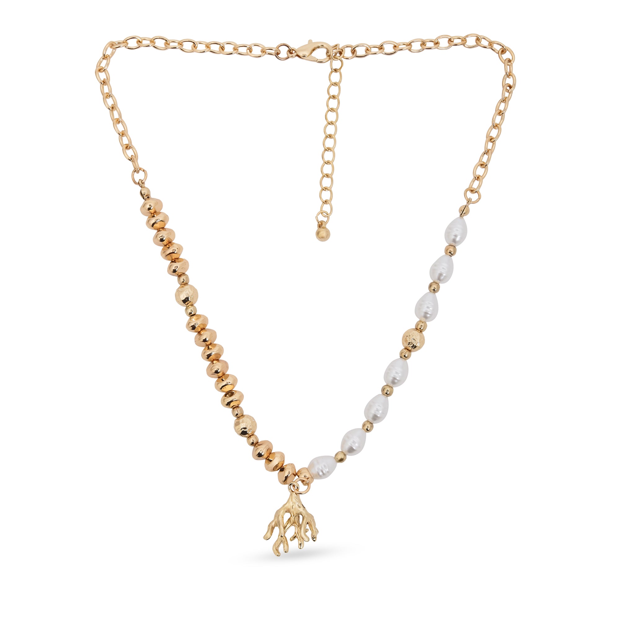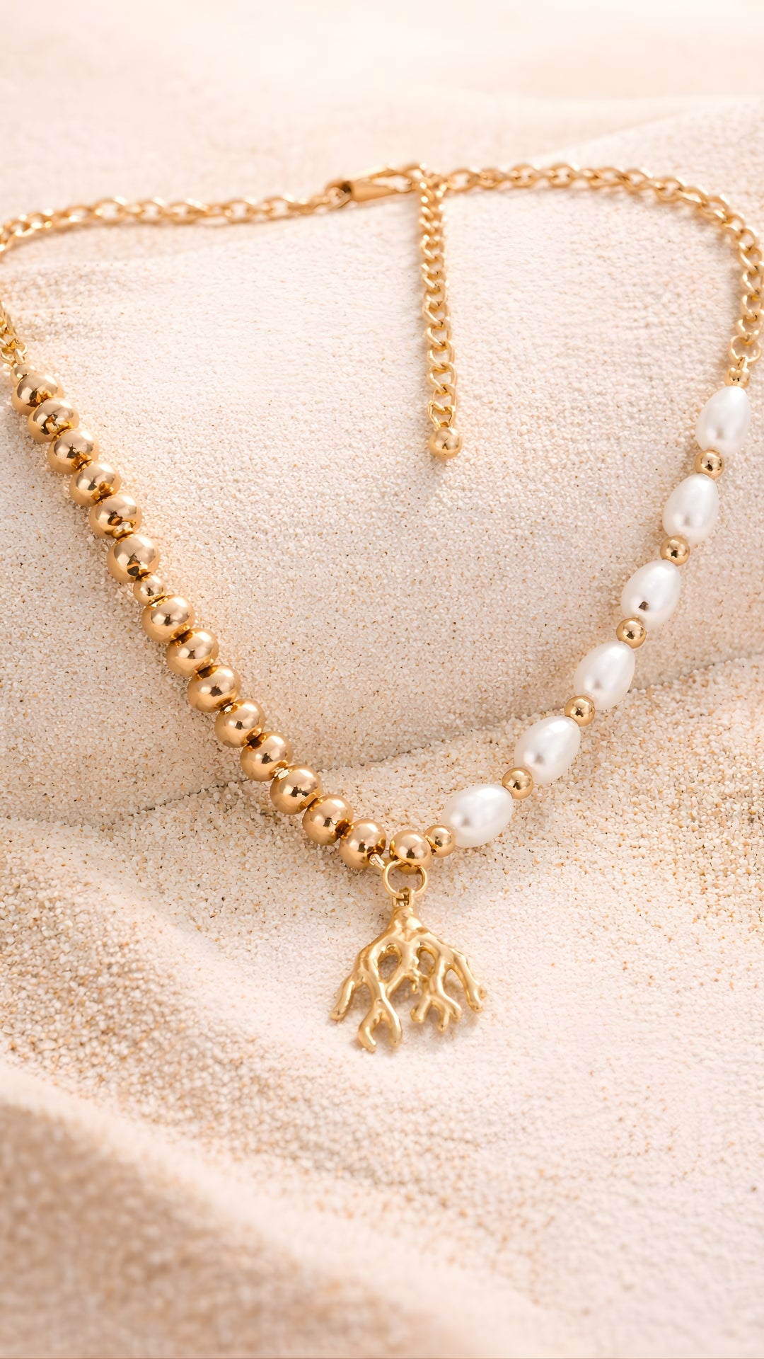 Dive into oceanic elegance with the Coral Charm Necklace — a striking blend of gold-toned beads and lustrous pearls, brought...