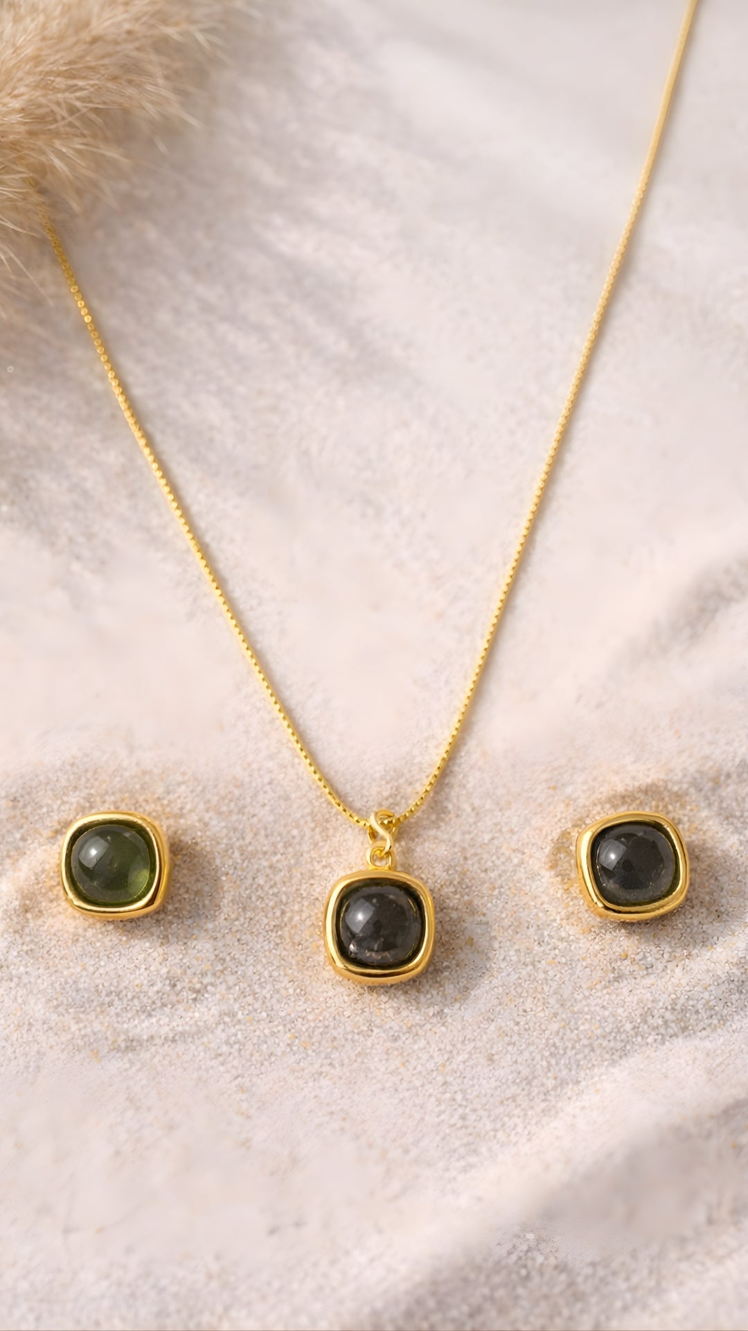 Crag Round Set – Onyx Black A sleek round pendant and stud set featuring deep onyx-black cabochons framed in a...