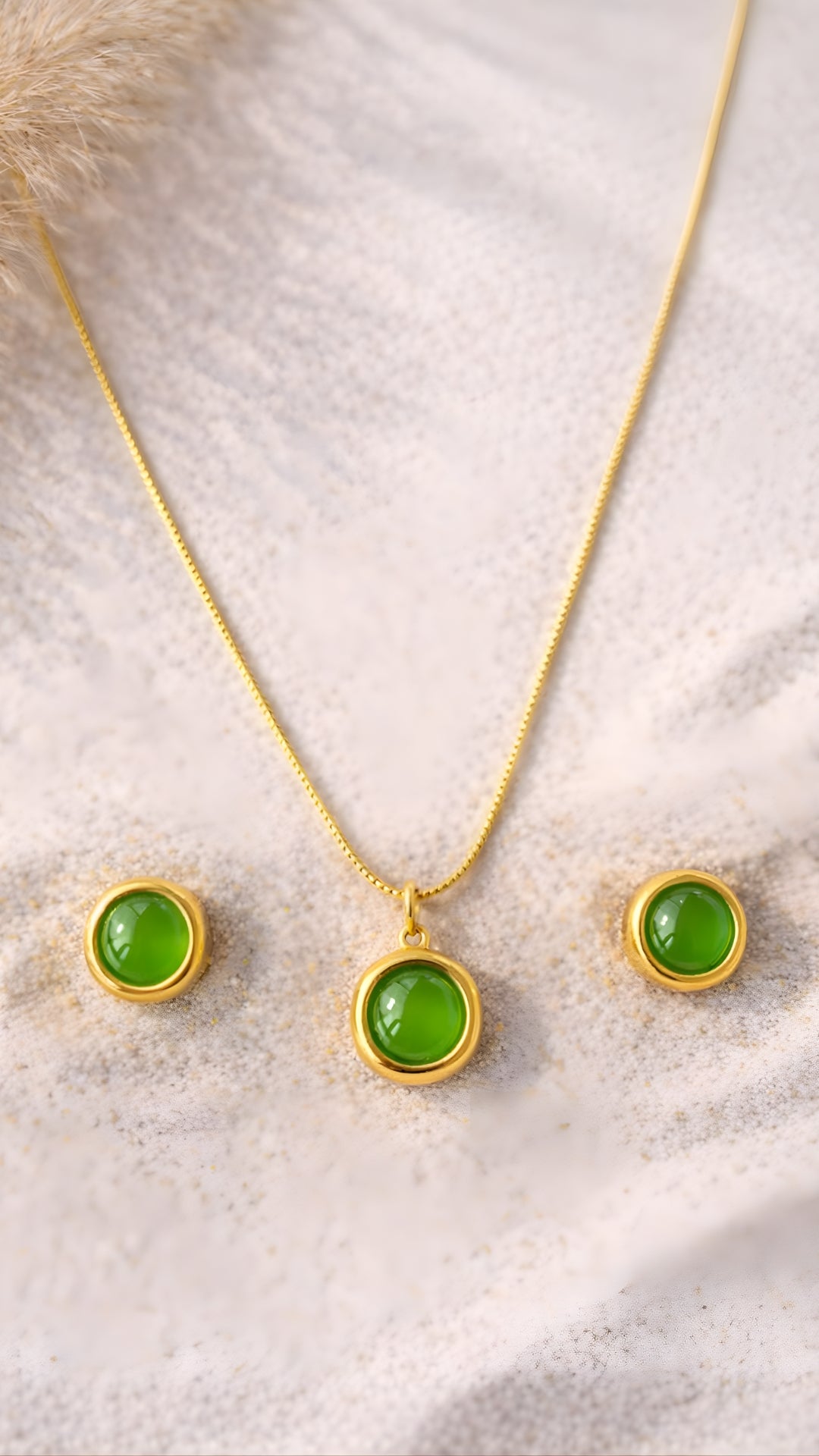 Crag Round Set – Emerald Green A luminous green cabochon set in a refined round gold bezel, radiating freshness and...