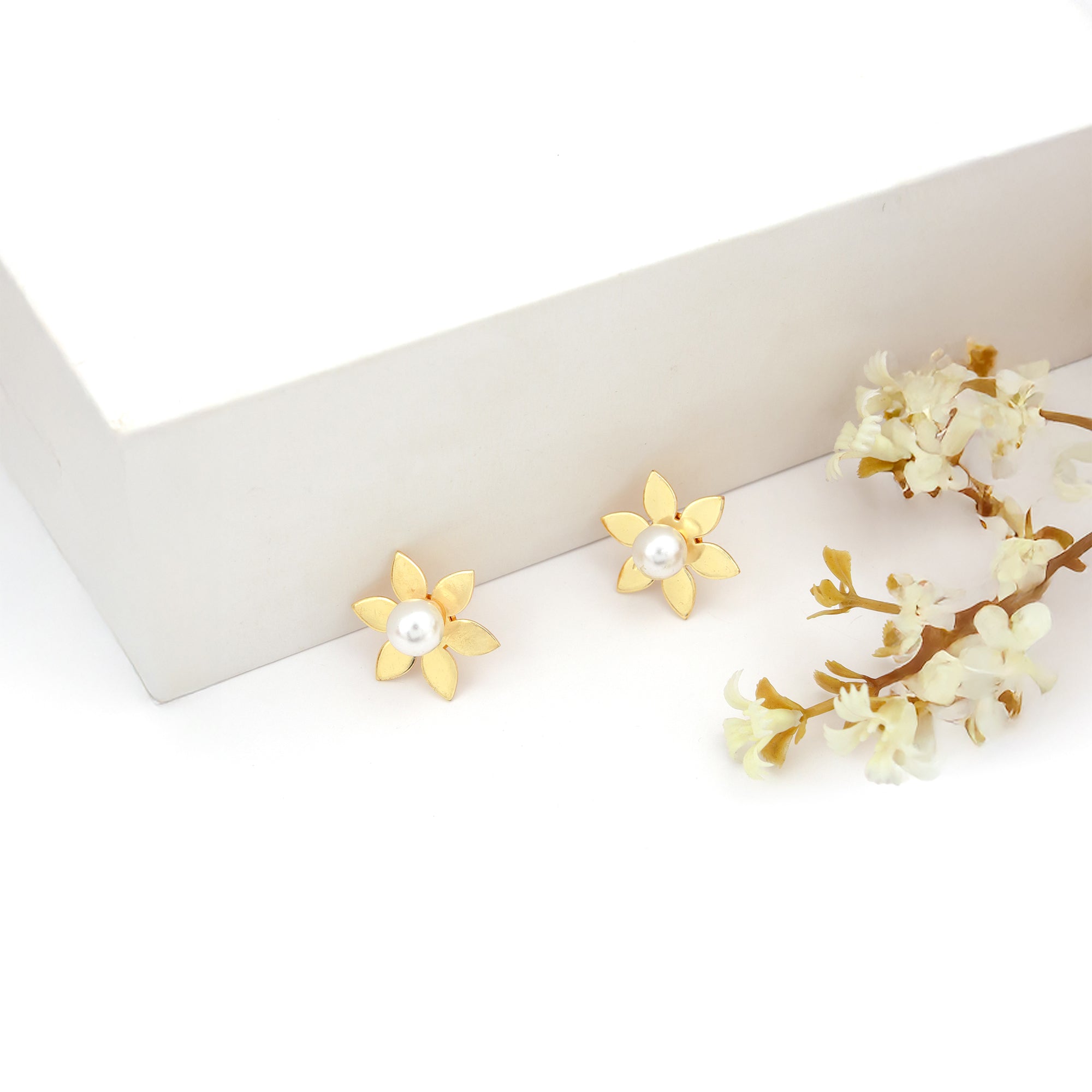 Daisy Pearl Studs Soft, graceful, and timeless — the Daisy Pearl Studs capture the charm of blooming petals in gold....