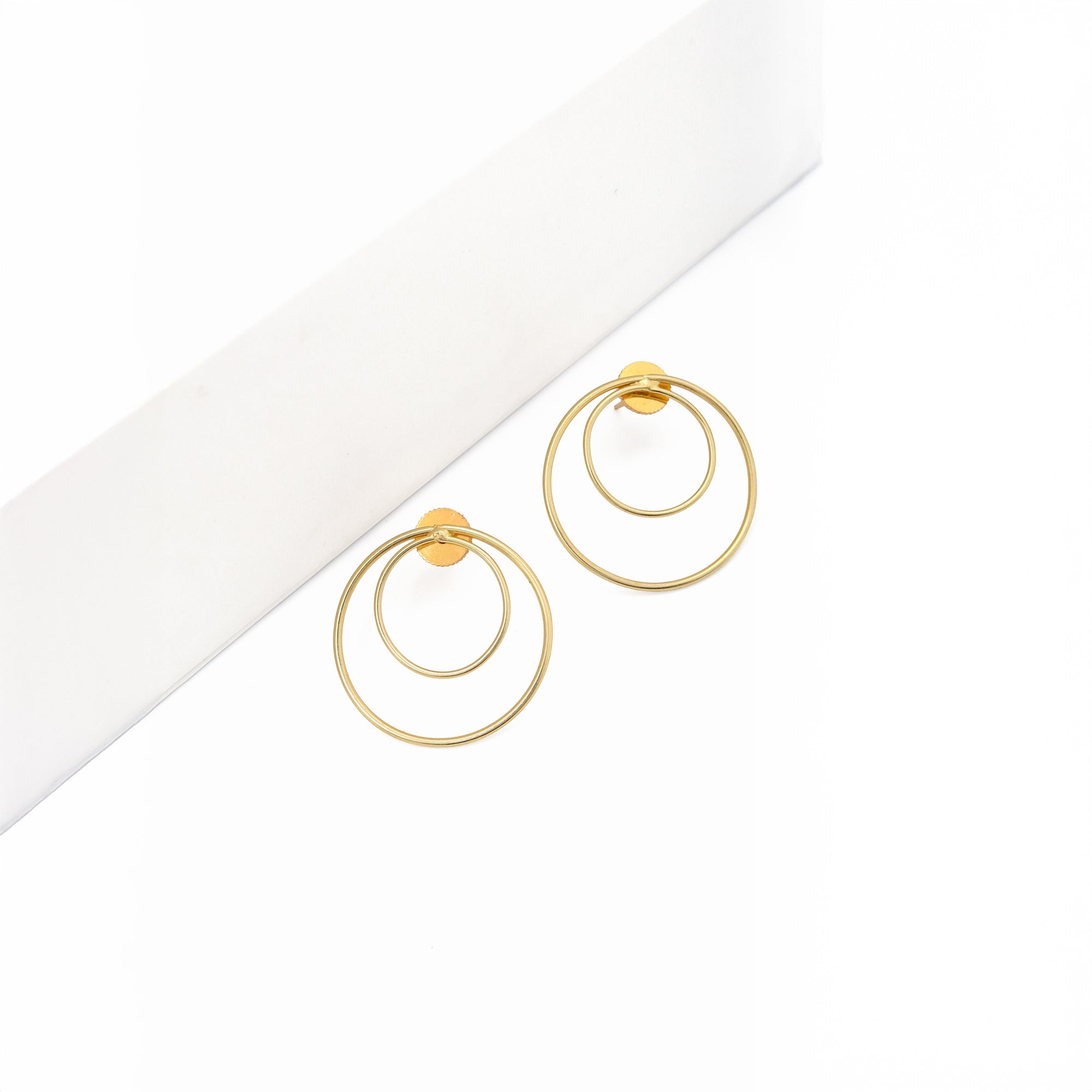 Minimal yet striking, these dual loop stud earrings from the Rage Collection play with symmetry and movement. The overlapping circular...