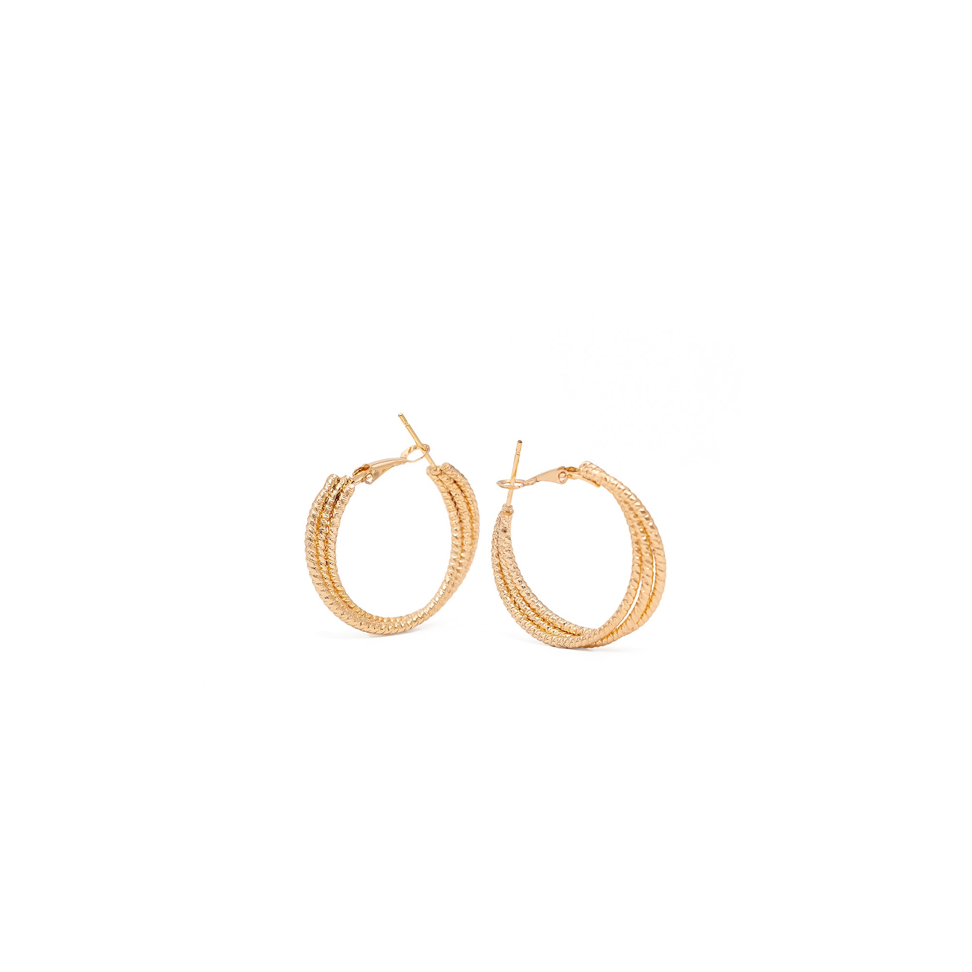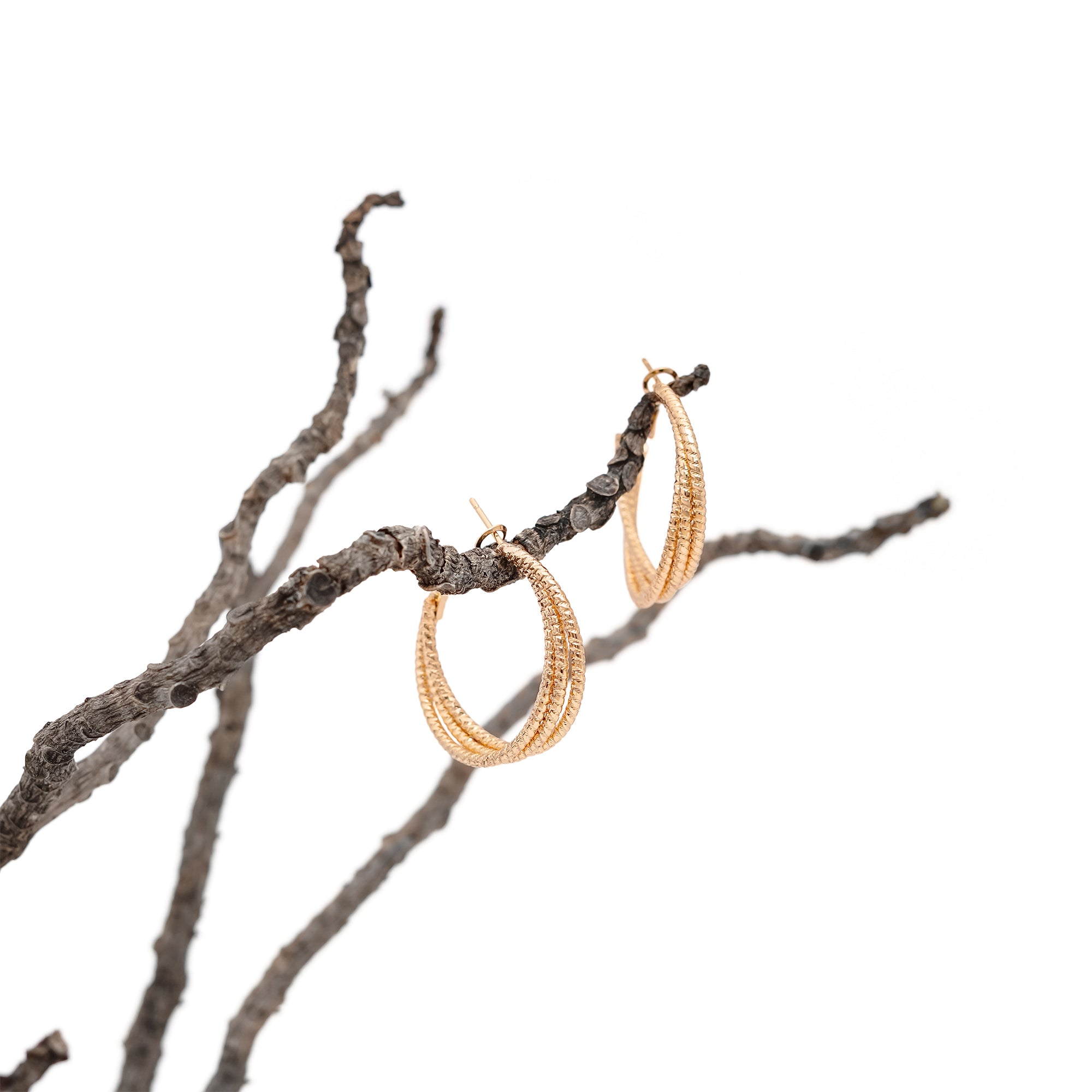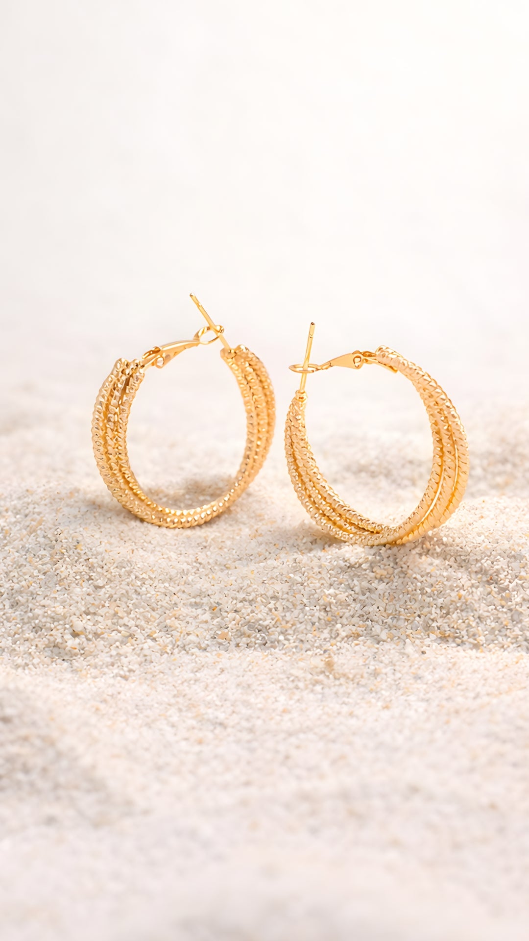 Minimal with a bold twist, the Dual Texture Gold Hoops combine smooth and patterned finishes for a striking layered effect....