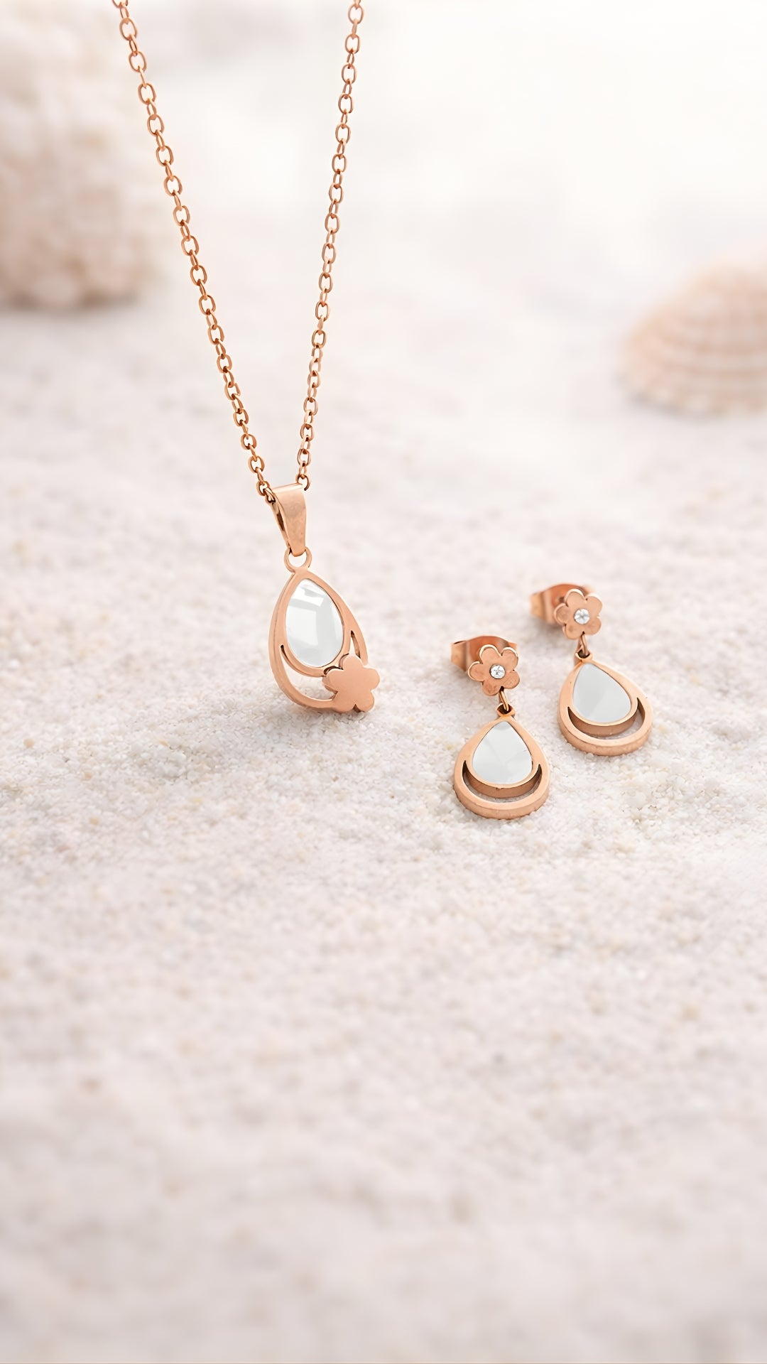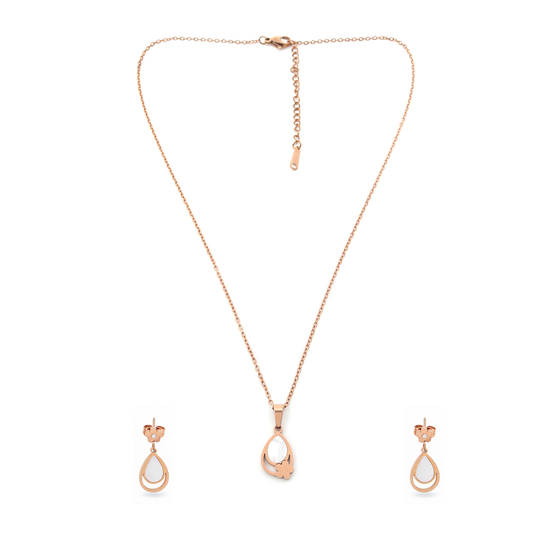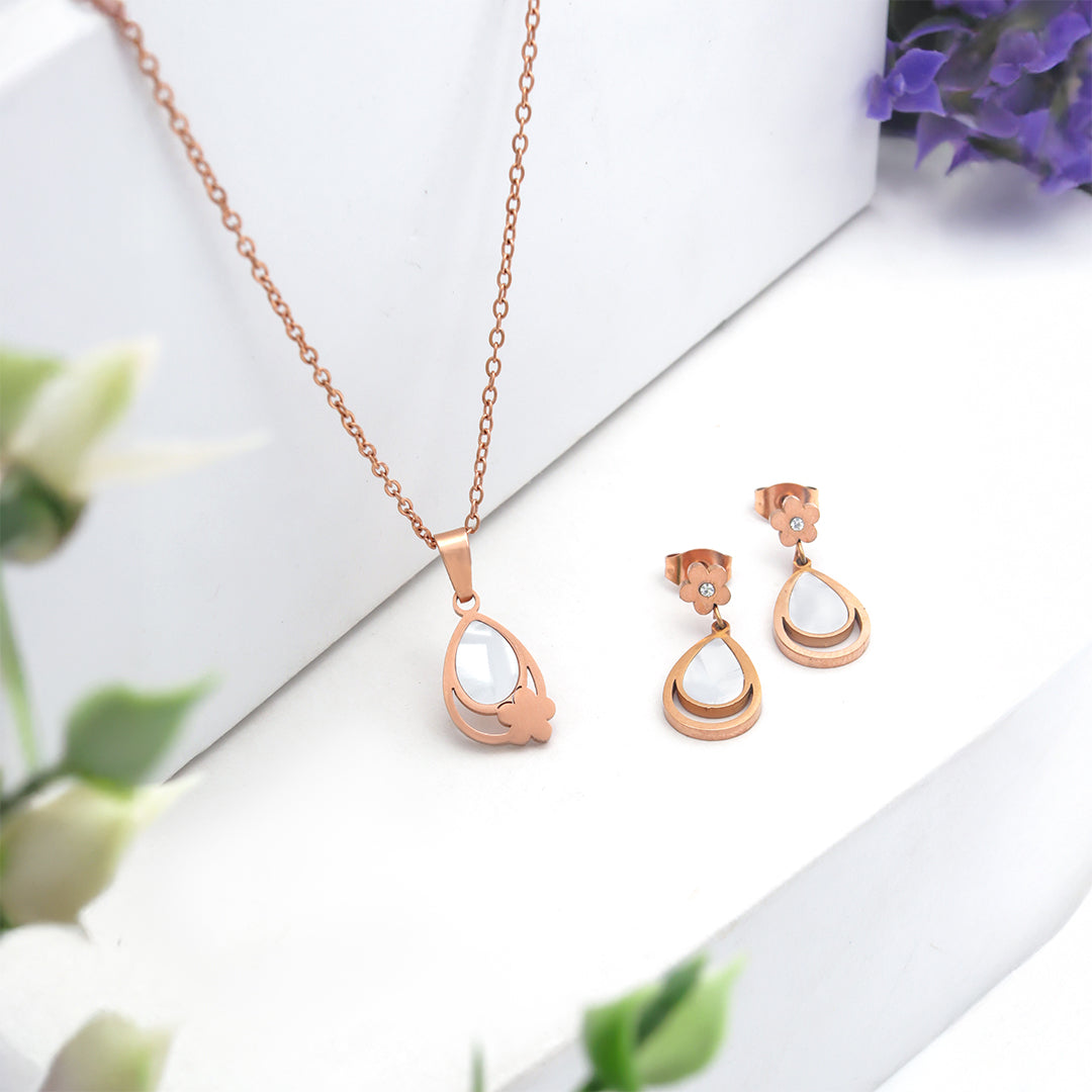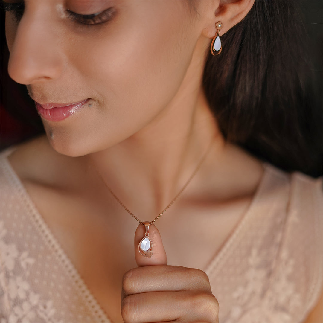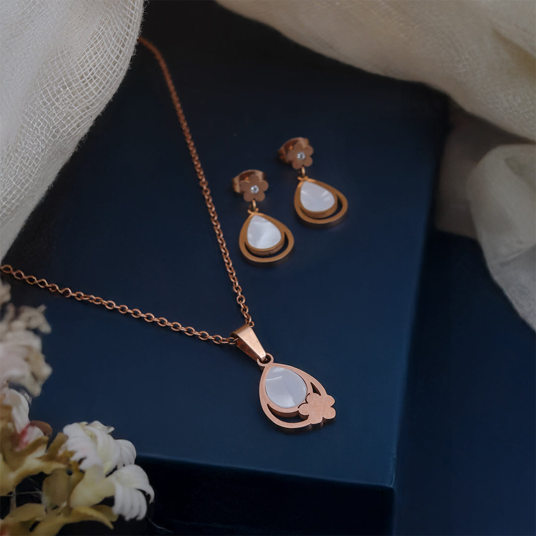 Elara Set – Teardrop Rose Gold Pendant & Earrings