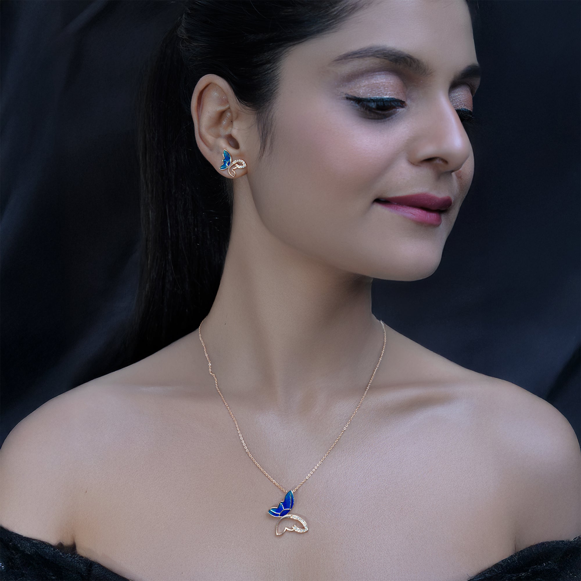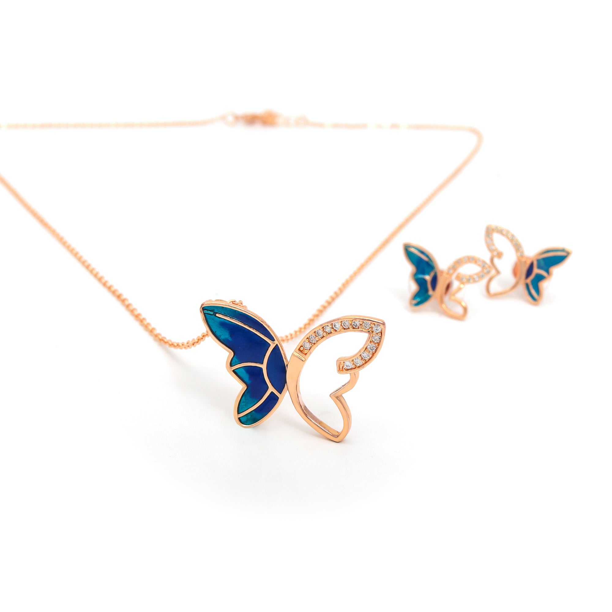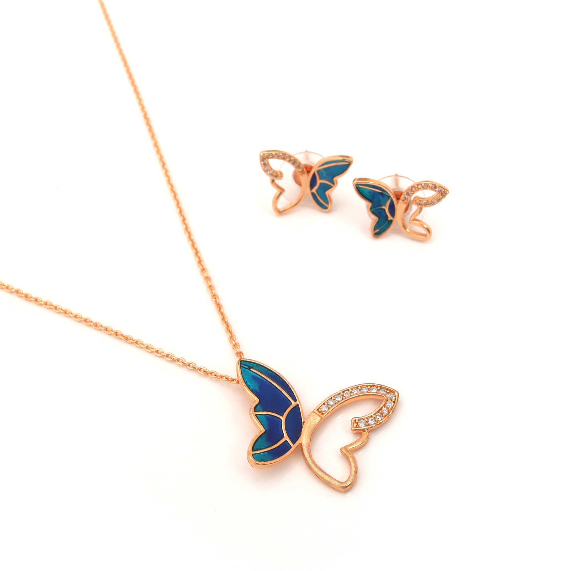 Celebrate transformation with the Eternal Flight Butterfly Set, featuring a bold pendant where one wing is crystal-lined and the other...