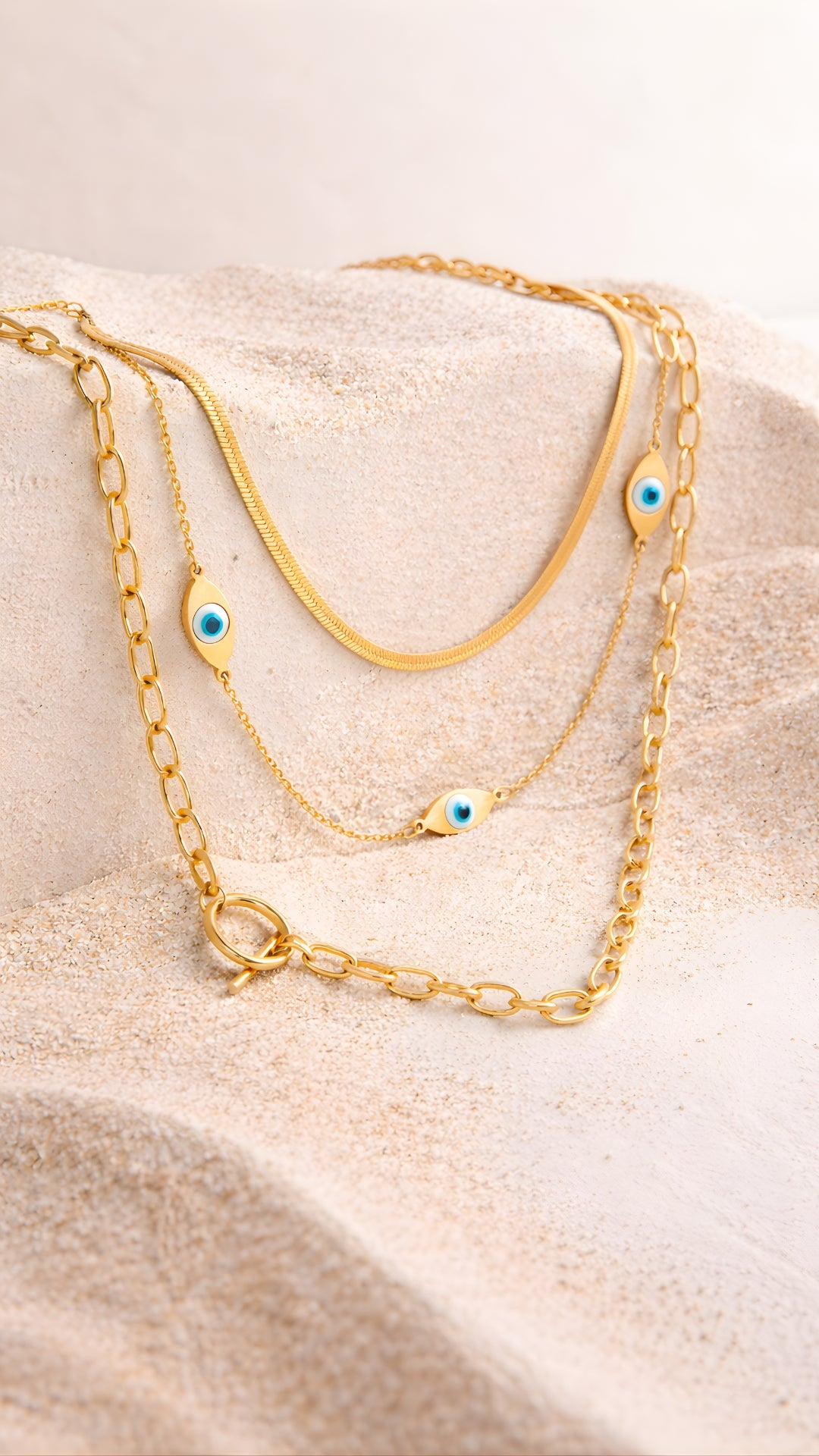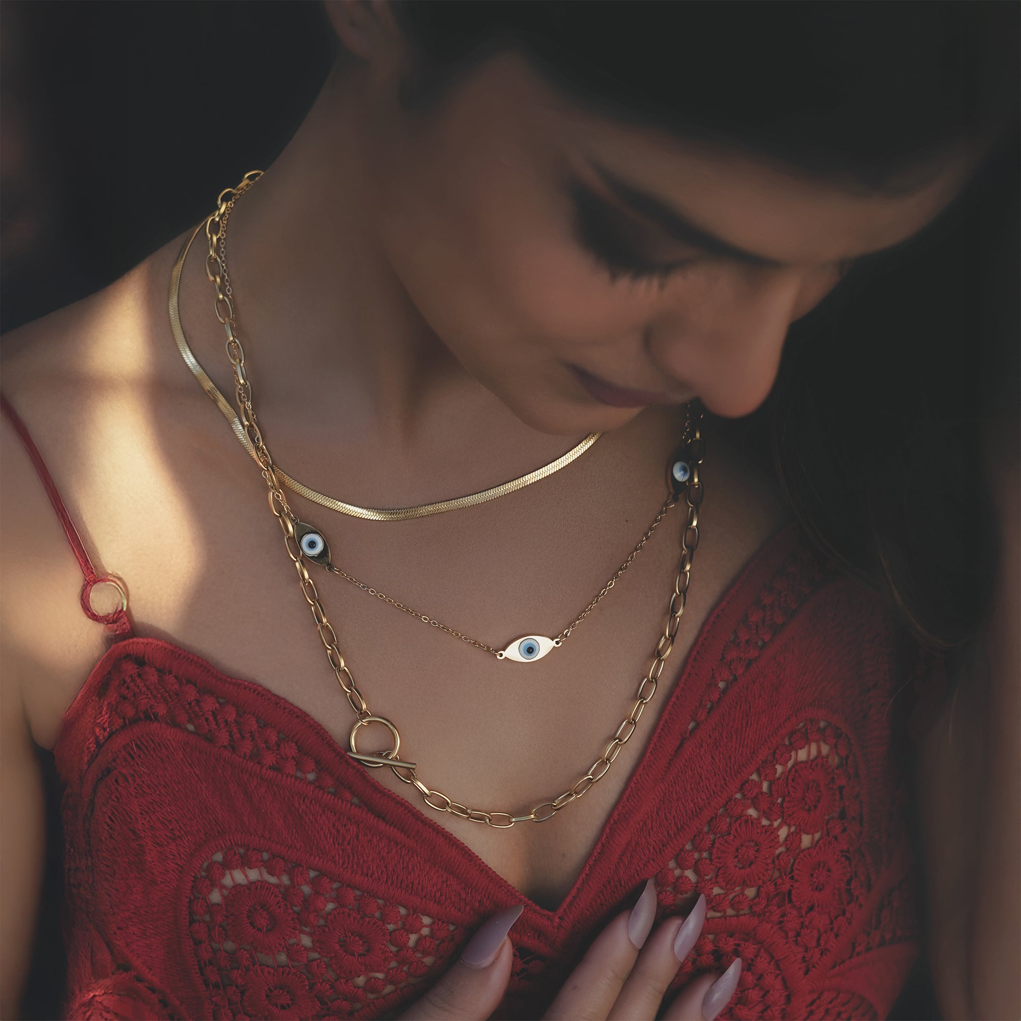 Love deserves protection—and this layered evil eye chain does exactly that. Featuring multiple chains with evil eye charms, this piece...