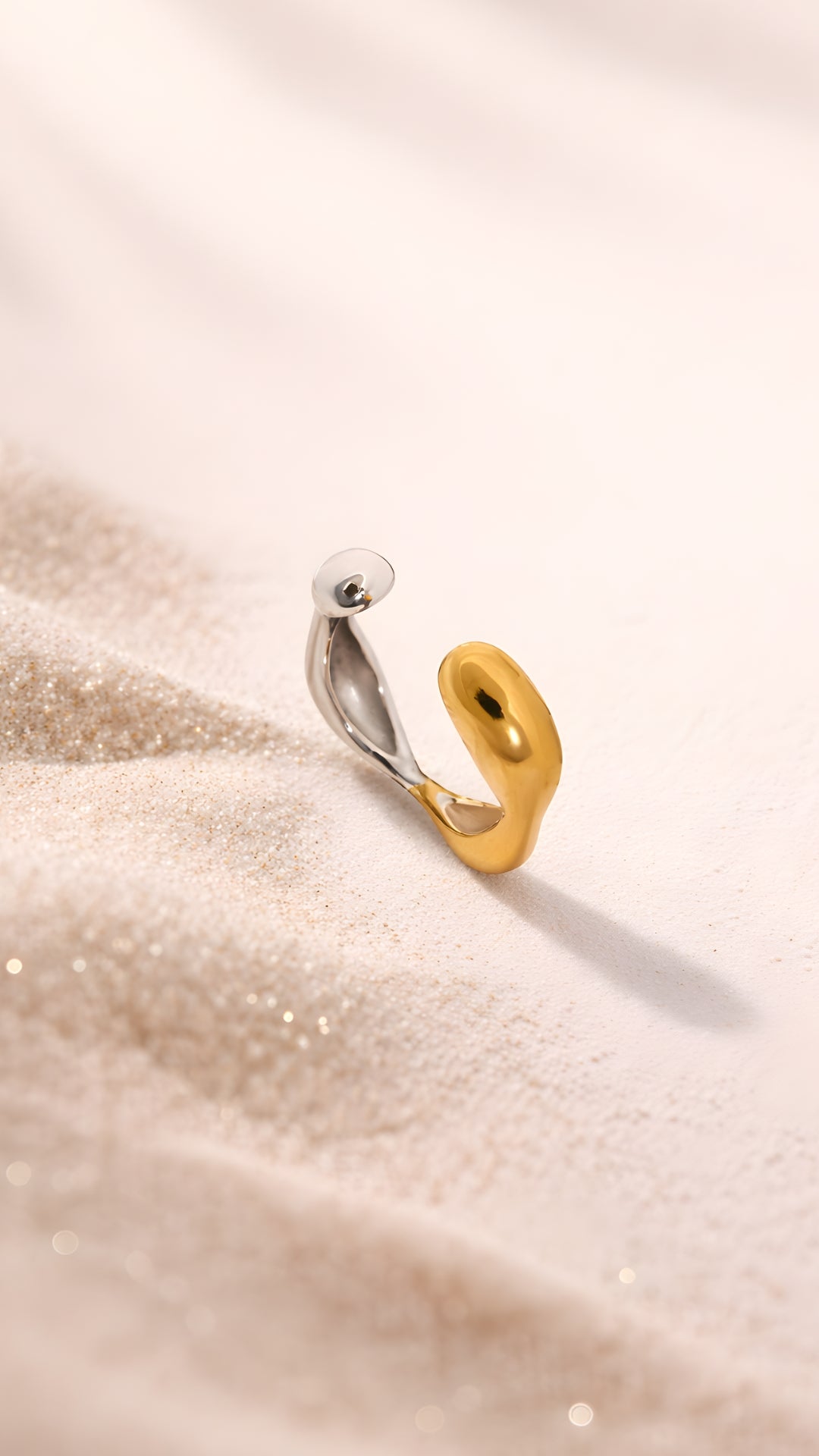 The Fluid Twist Open Ring is a clean, modern masterpiece that wraps around your finger in a smooth, flowing motion. With its dual-tone finish and sleek open design, it’s versatile enough to match every outfit — from minimal streetwear to elegant evening wear. It looks designer, feels premium, and stays comfortable all day thanks to its lightweight and anti-tarnish build. A must-have for those who love understated luxury.