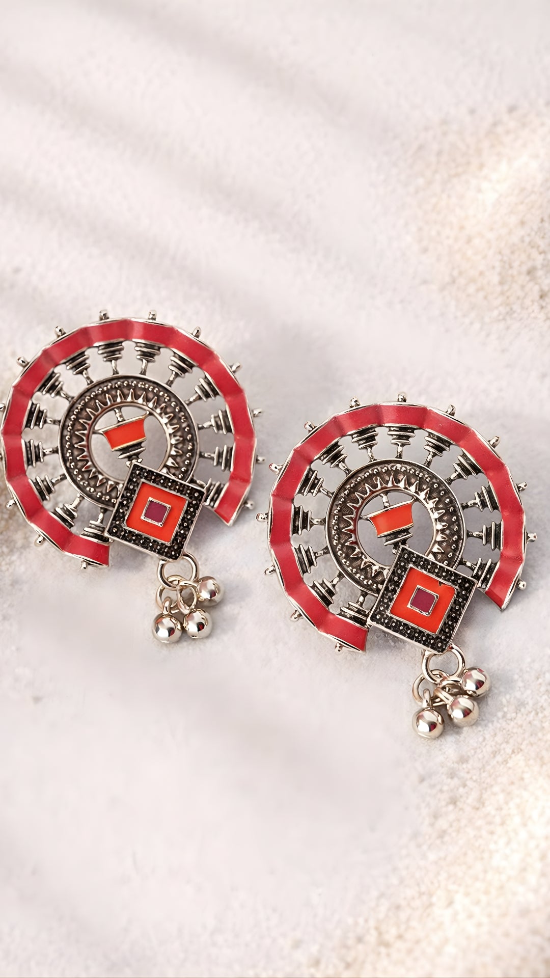 Bold and expressive, the Glaze Chakra Studs – Crimson Red celebrate traditional Indian ornamentation with a strong color statement. The circular...