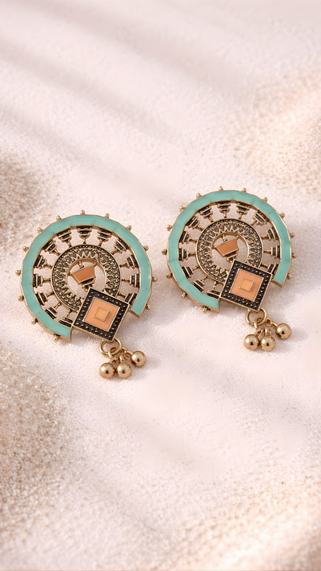 Minimal yet powerful, the Glaze Chakra Studs are inspired by circular tribal motifs and rhythmic symmetry. Featuring a mint green...