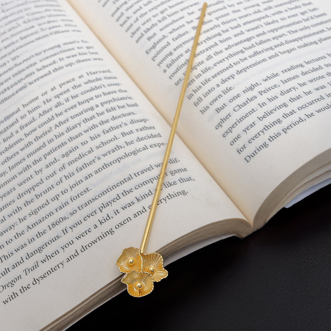 Golden Trio Petal Marker Symbolizing harmony and creativity, this triple-flower design adds warmth to any page or hairstyle. Handcrafted with...