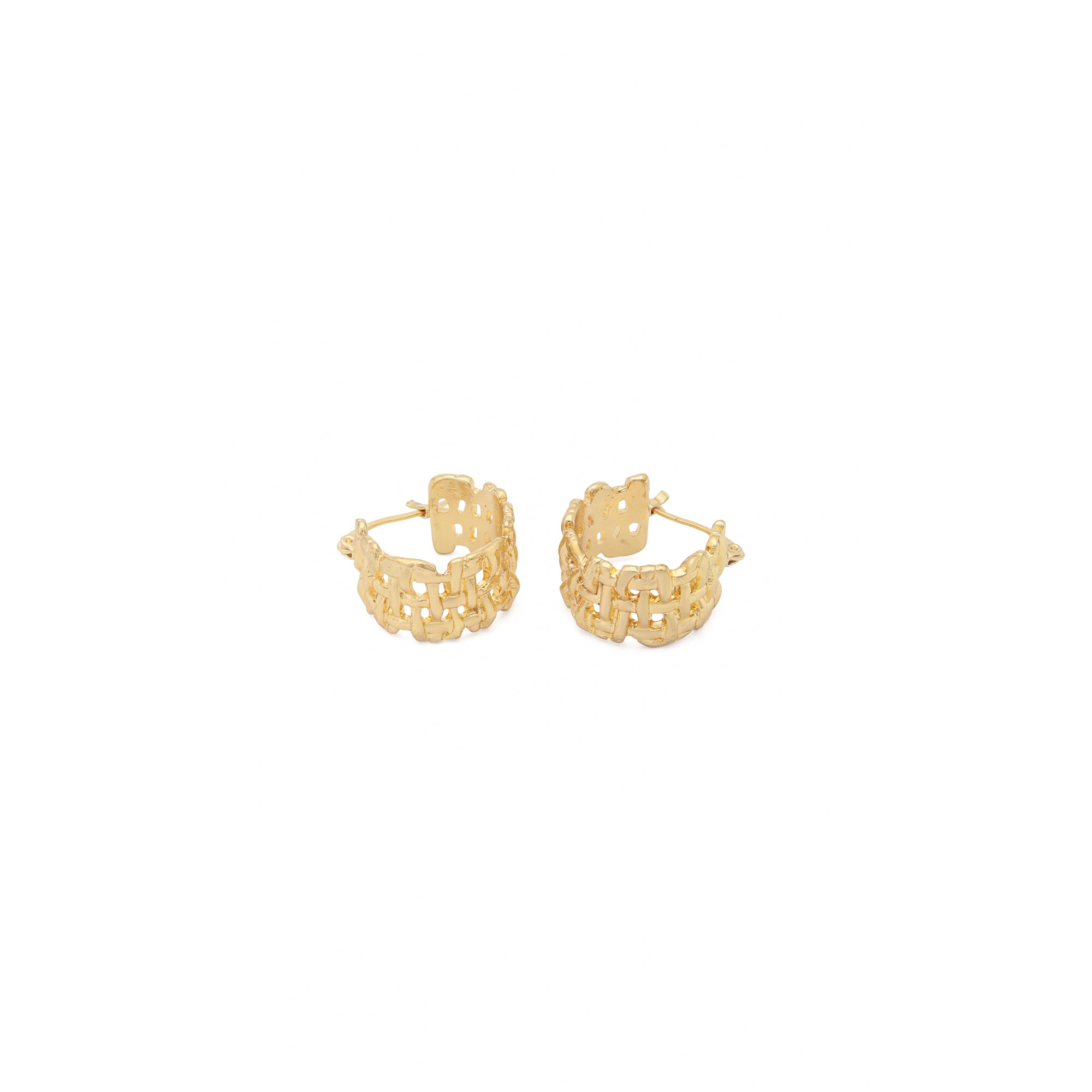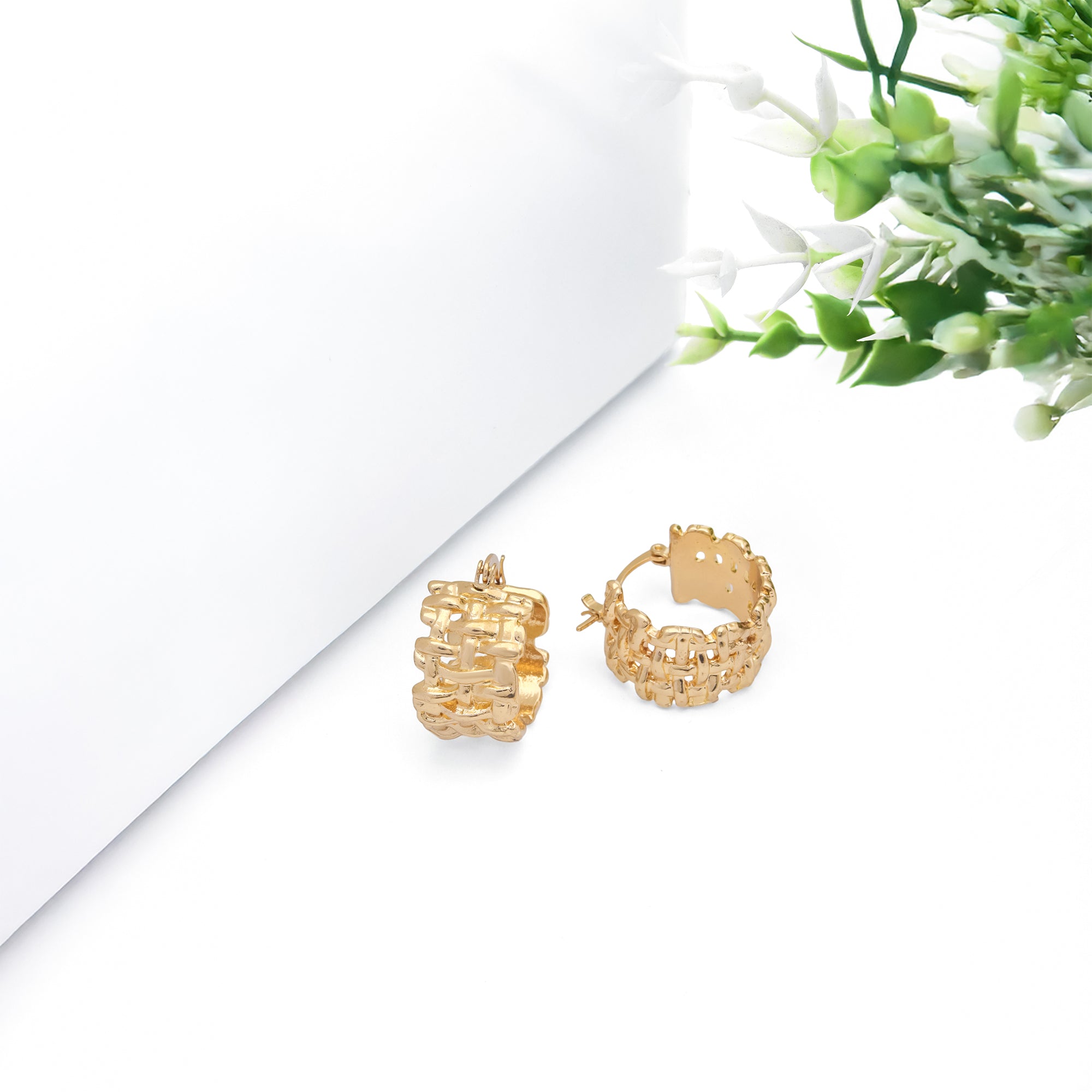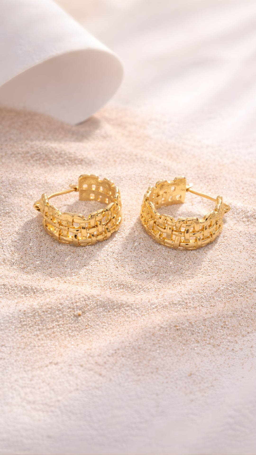 Elevate your everyday style with these golden woven luxe hoops, designed with an intricate interlocking pattern that adds texture and...