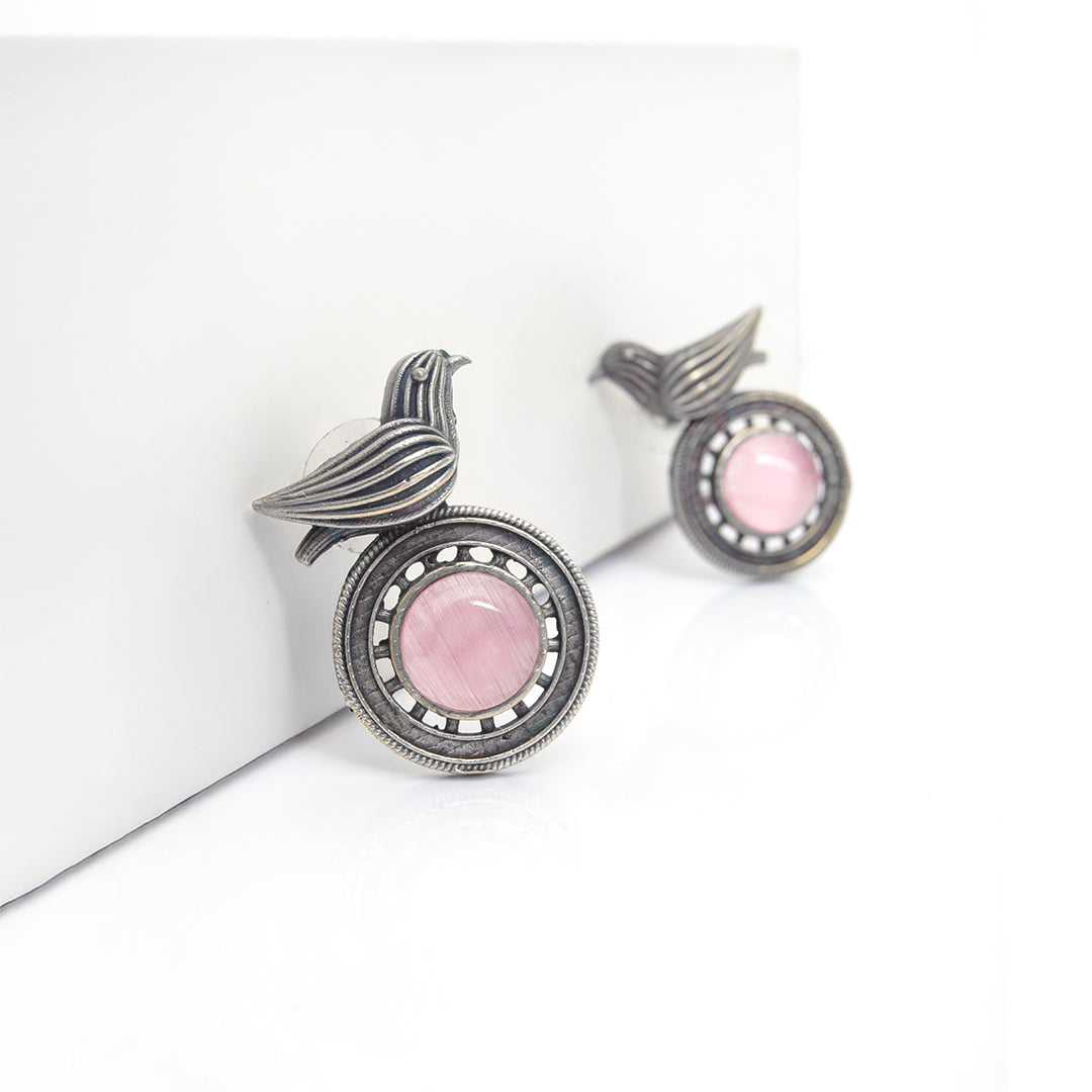Bringing together softness and strength, the Gulabi Pakshi Studs showcase a beautiful fusion of form and color. A delicately perched oxidized...