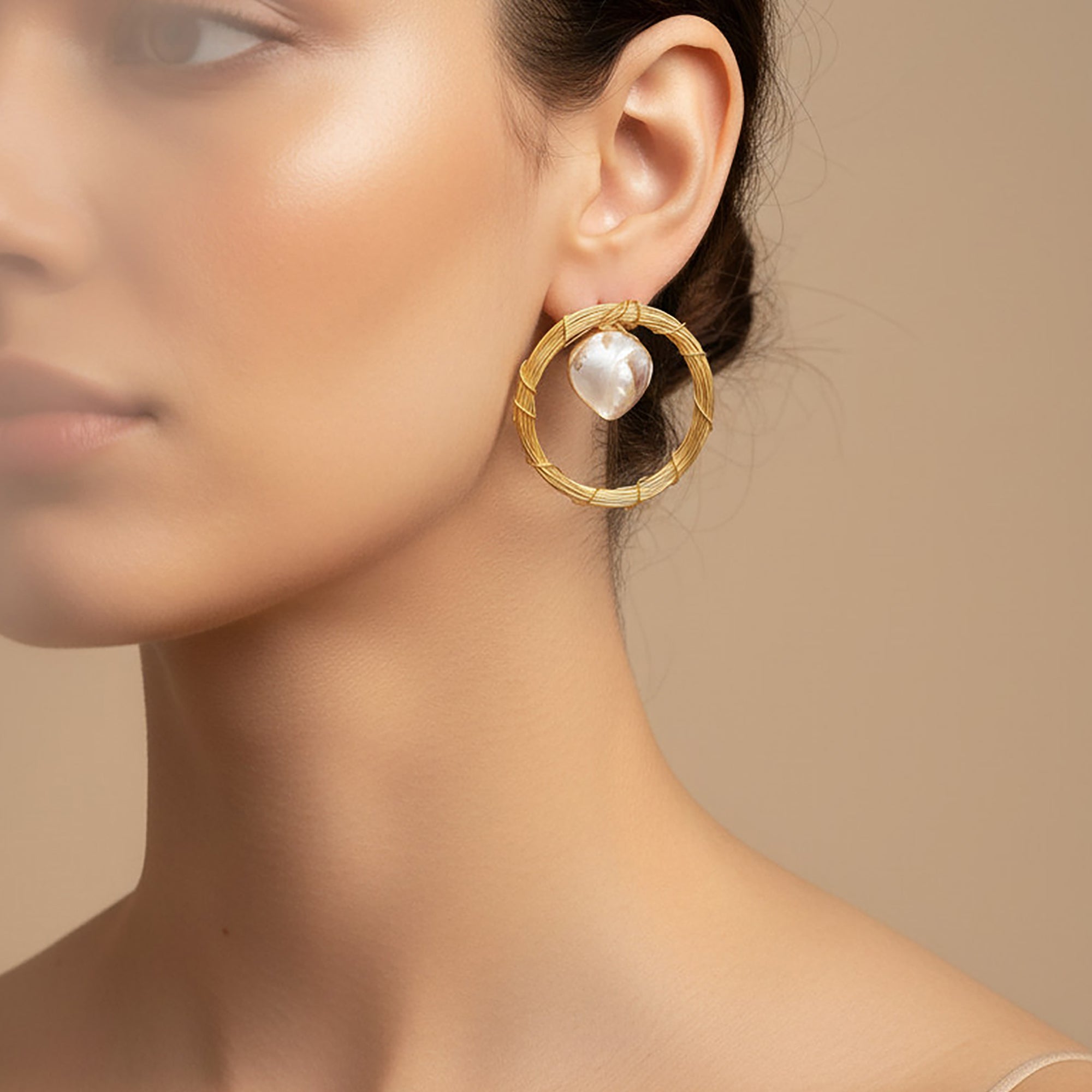 Modern yet timeless, the Halo Pearl Hoops capture the essence of celestial beauty. Their circular gold frame, delicately woven around...