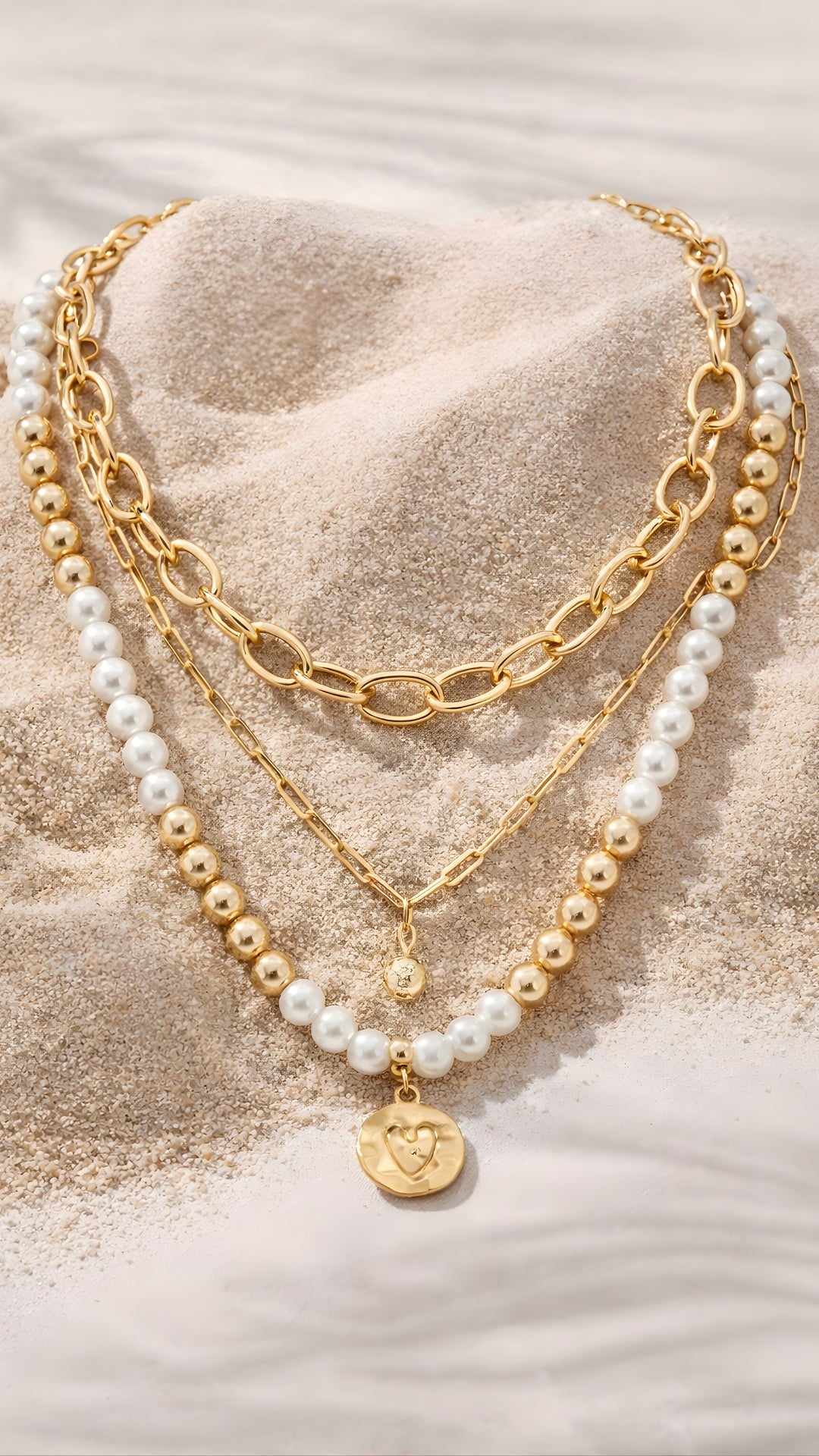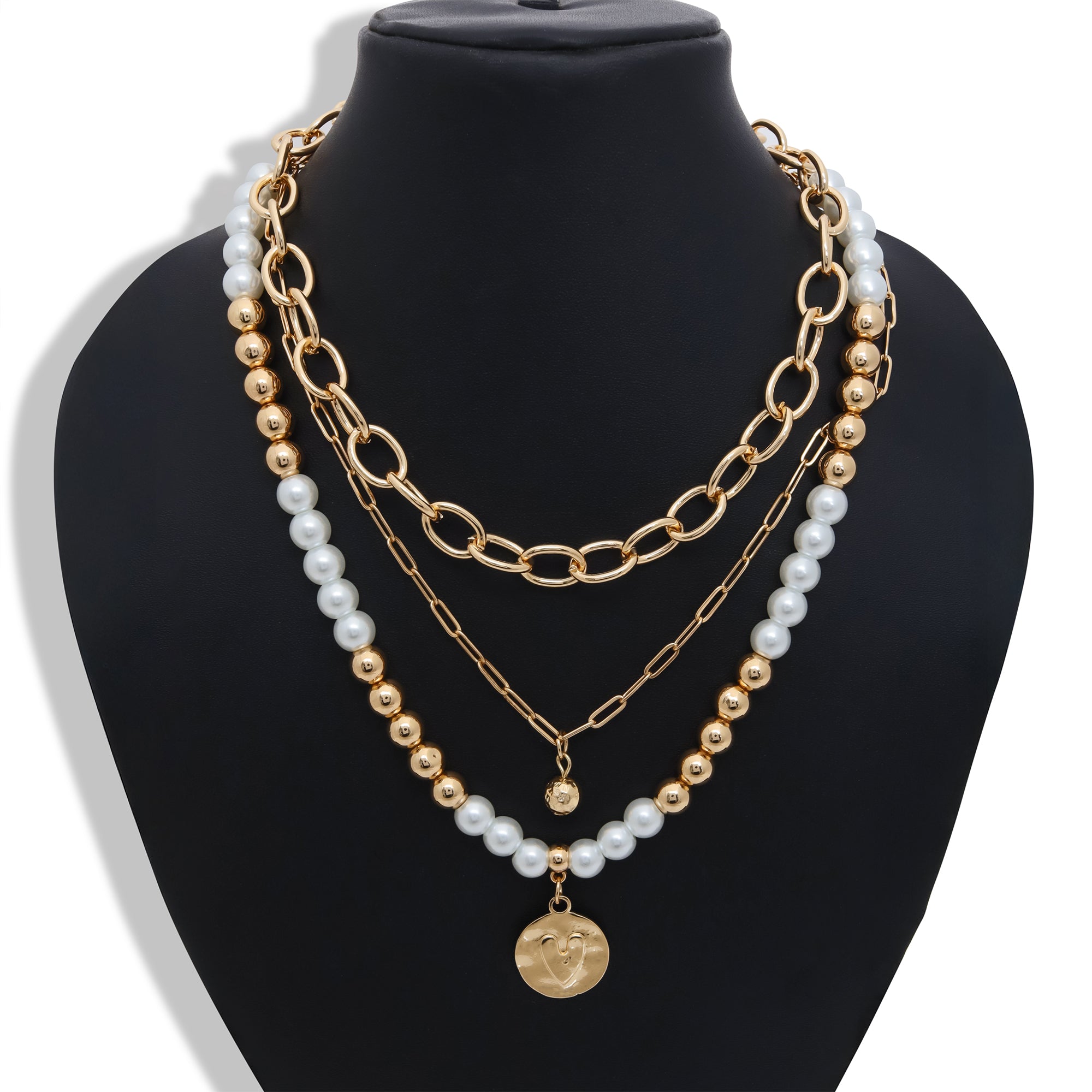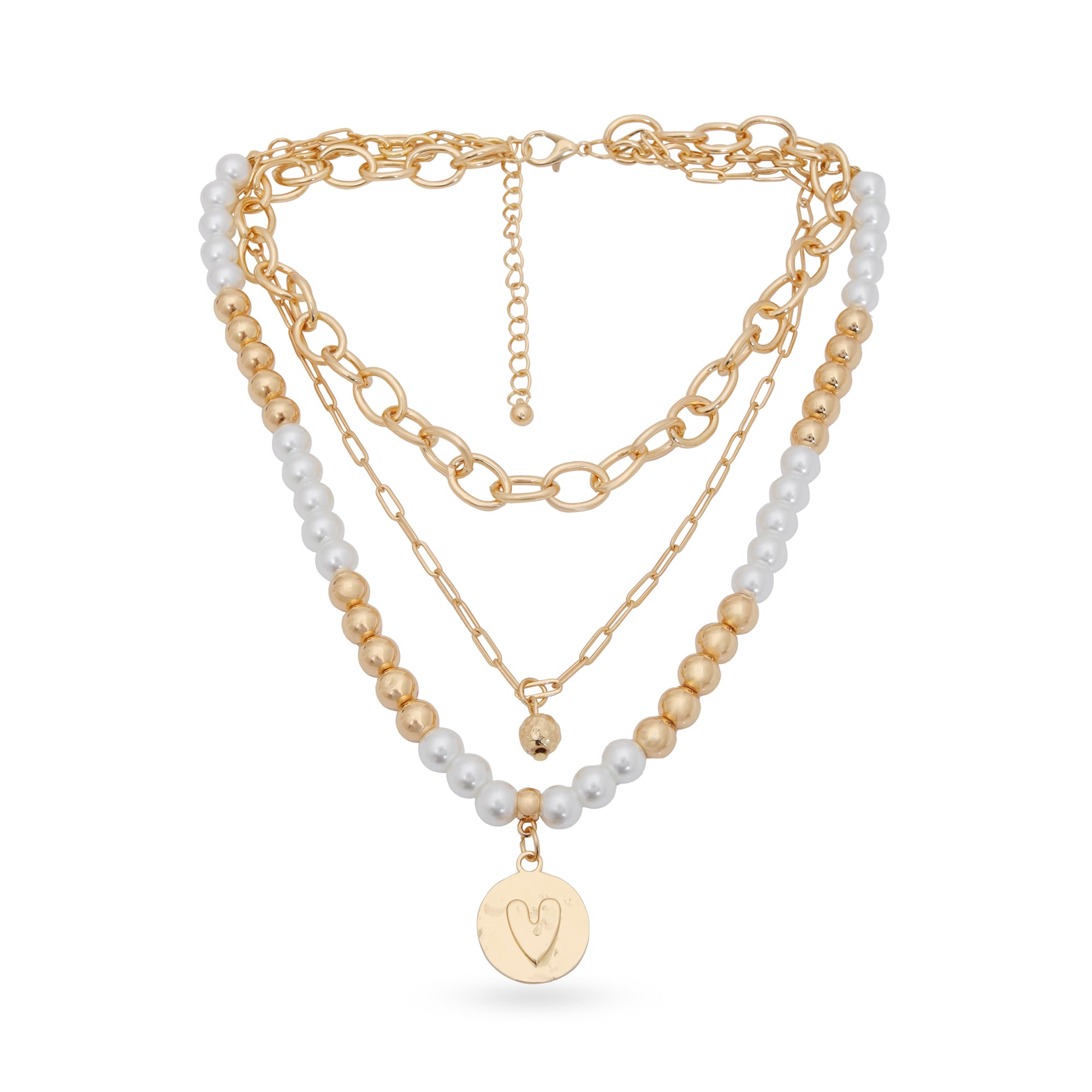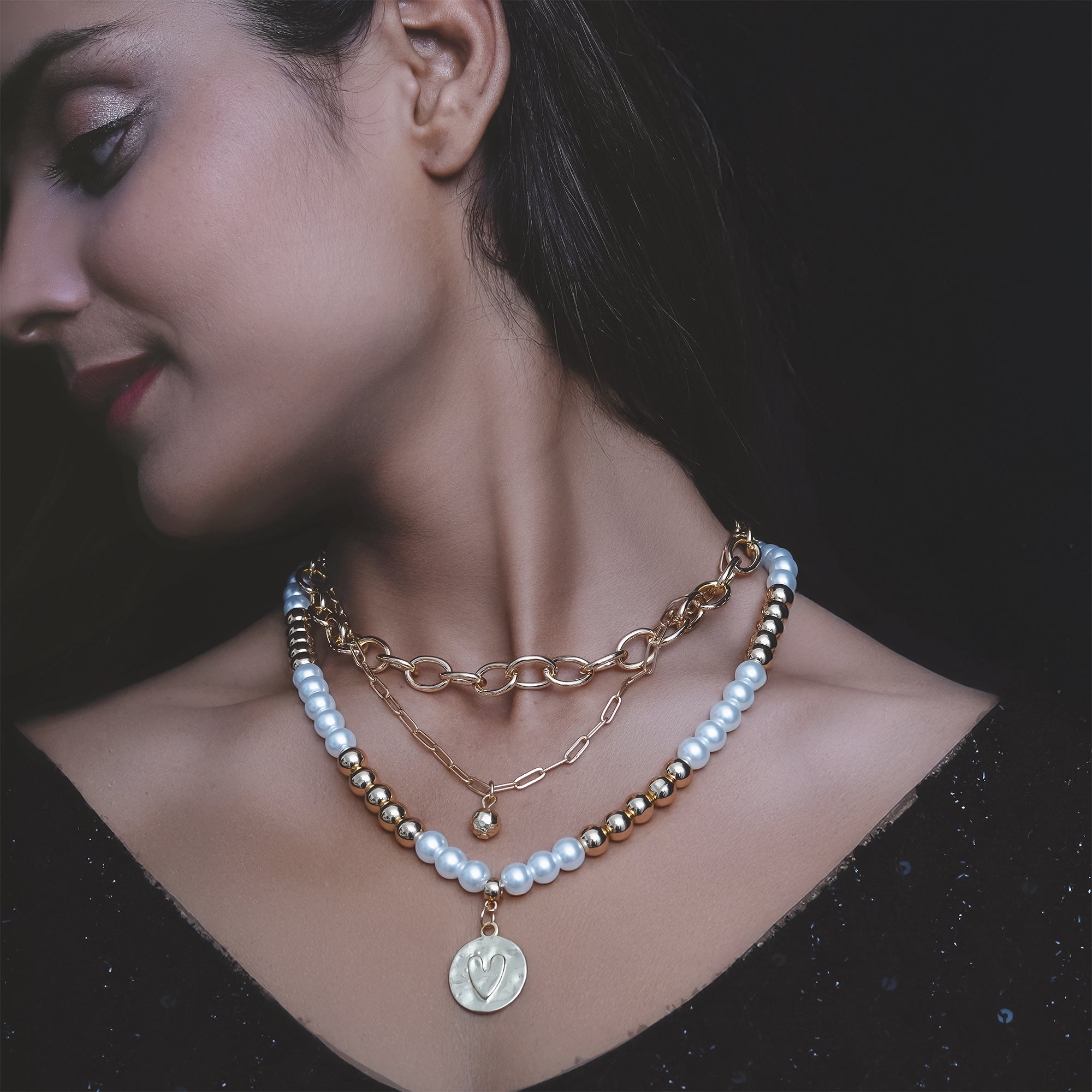 The Heart Medallion Layered Necklace from the Mukta Collection is designed for women who love making bold yet elegant statements....