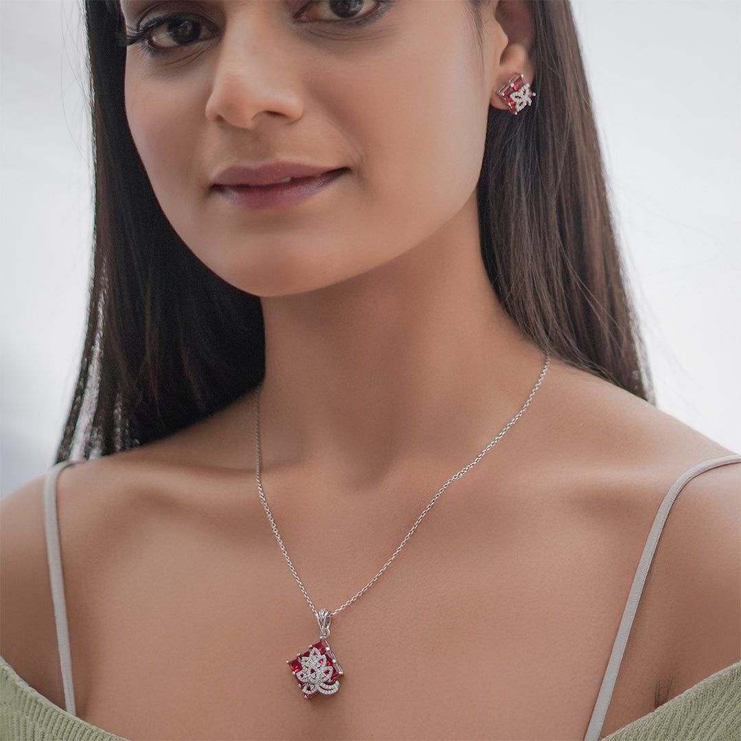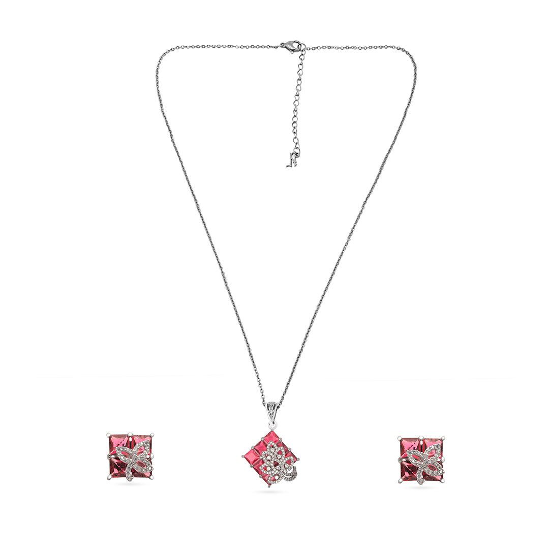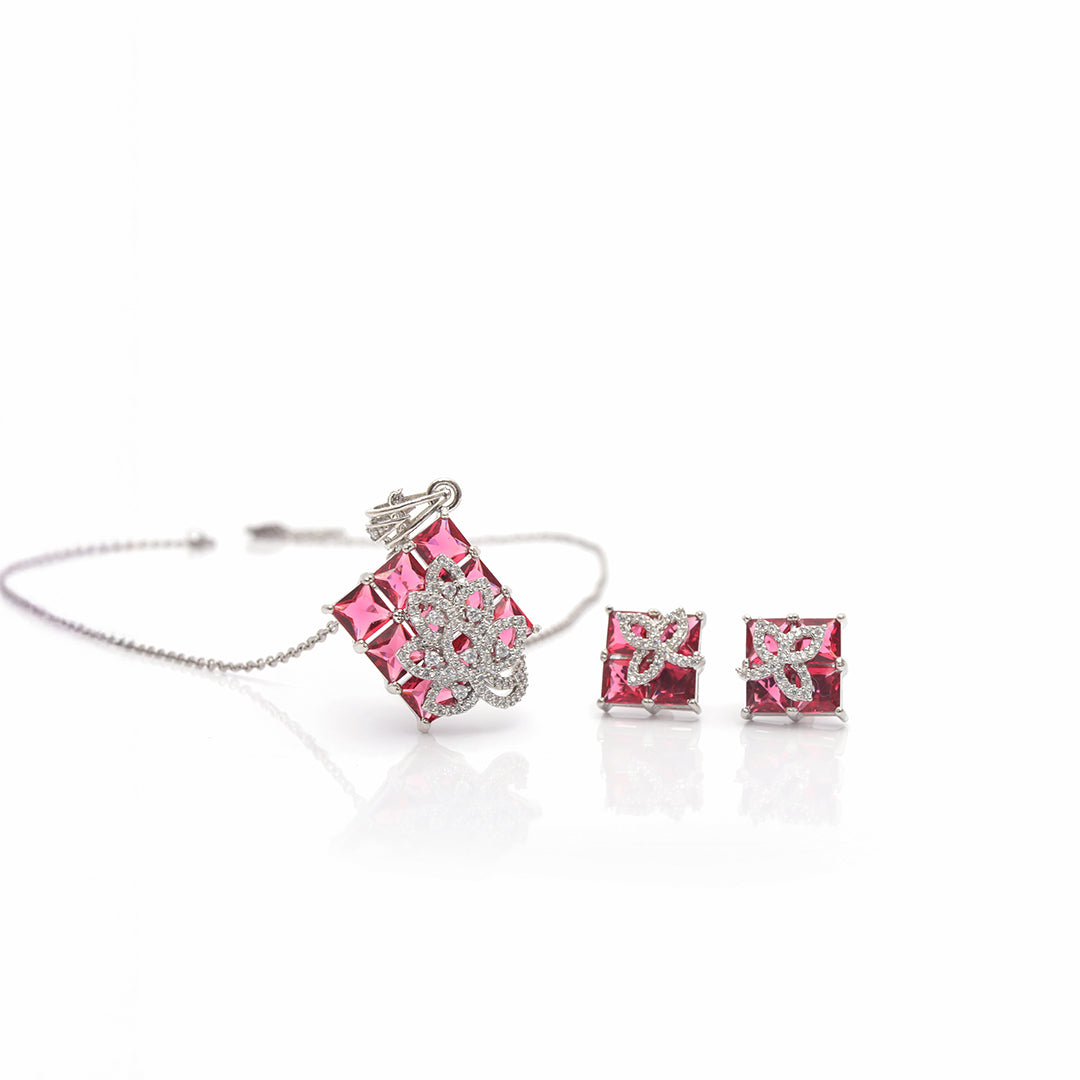 Inaya Set – Pink Stone Pendant & Earrings