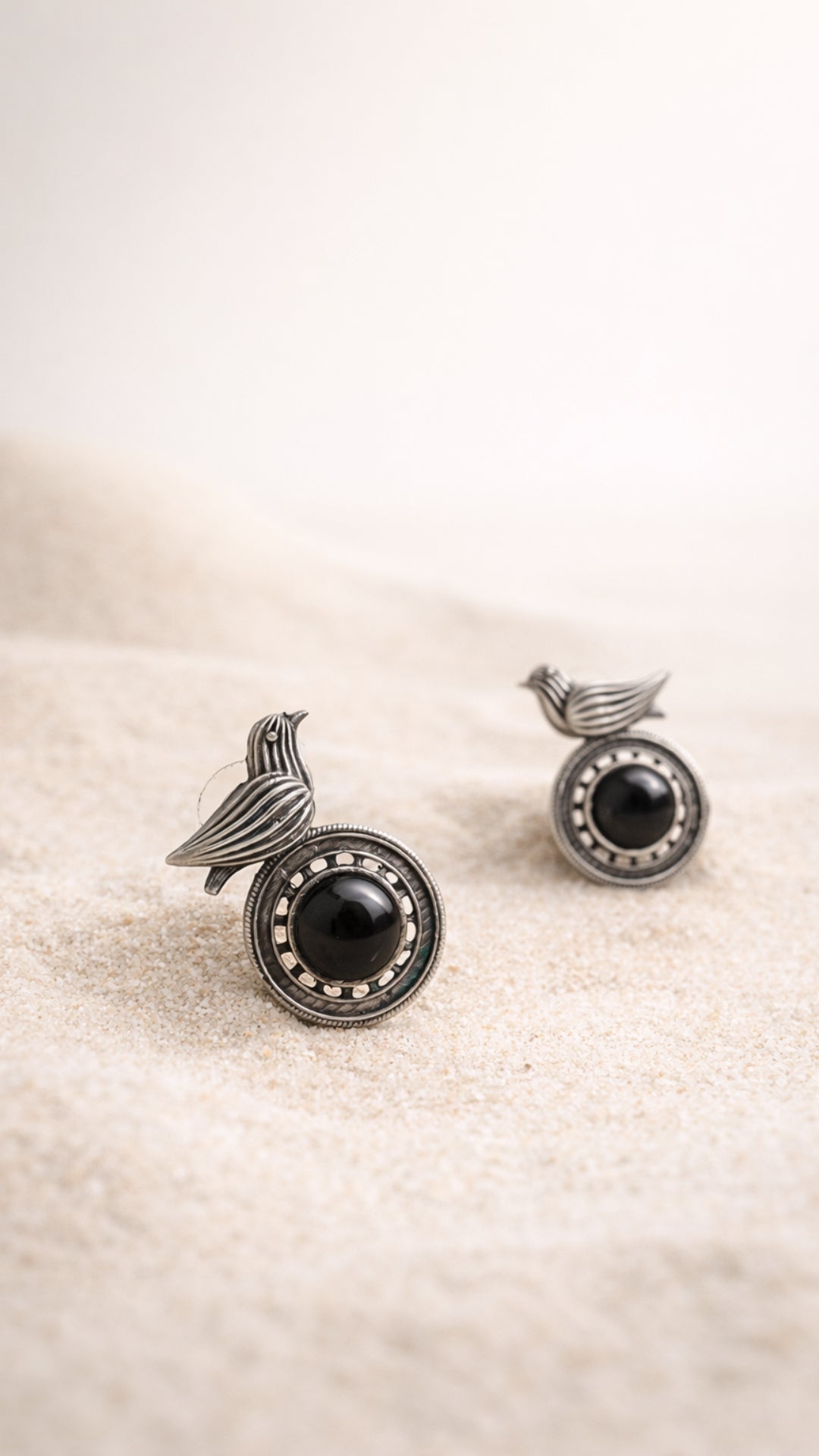 Designed for those who gravitate toward bold simplicity, the Kaala Pakshi Studs bring striking contrast and minimal tribal design to...
