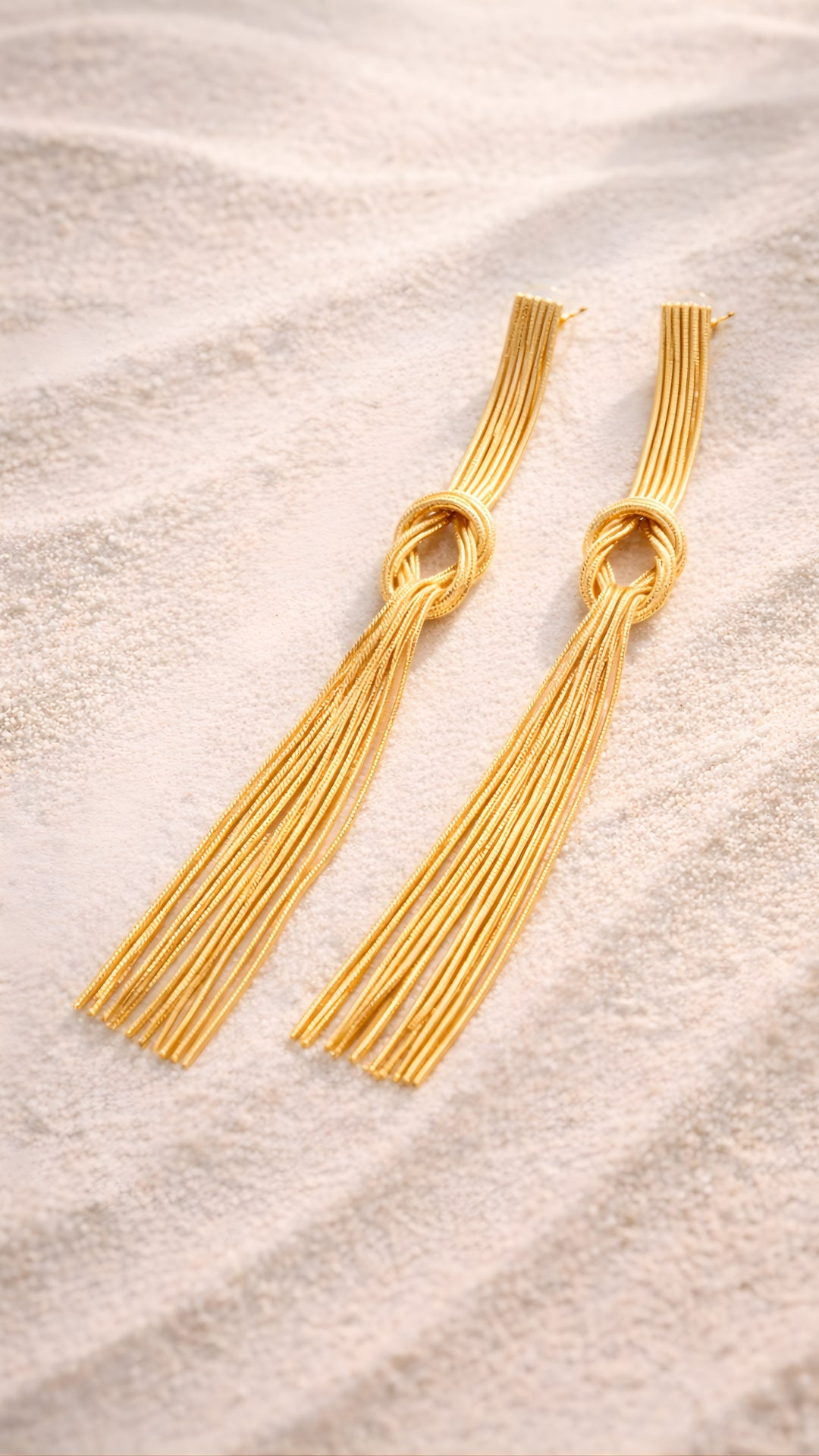 The Knotted Tassel Earrings are a modern twist on classic tassel designs. Featuring a unique knot at the center with...