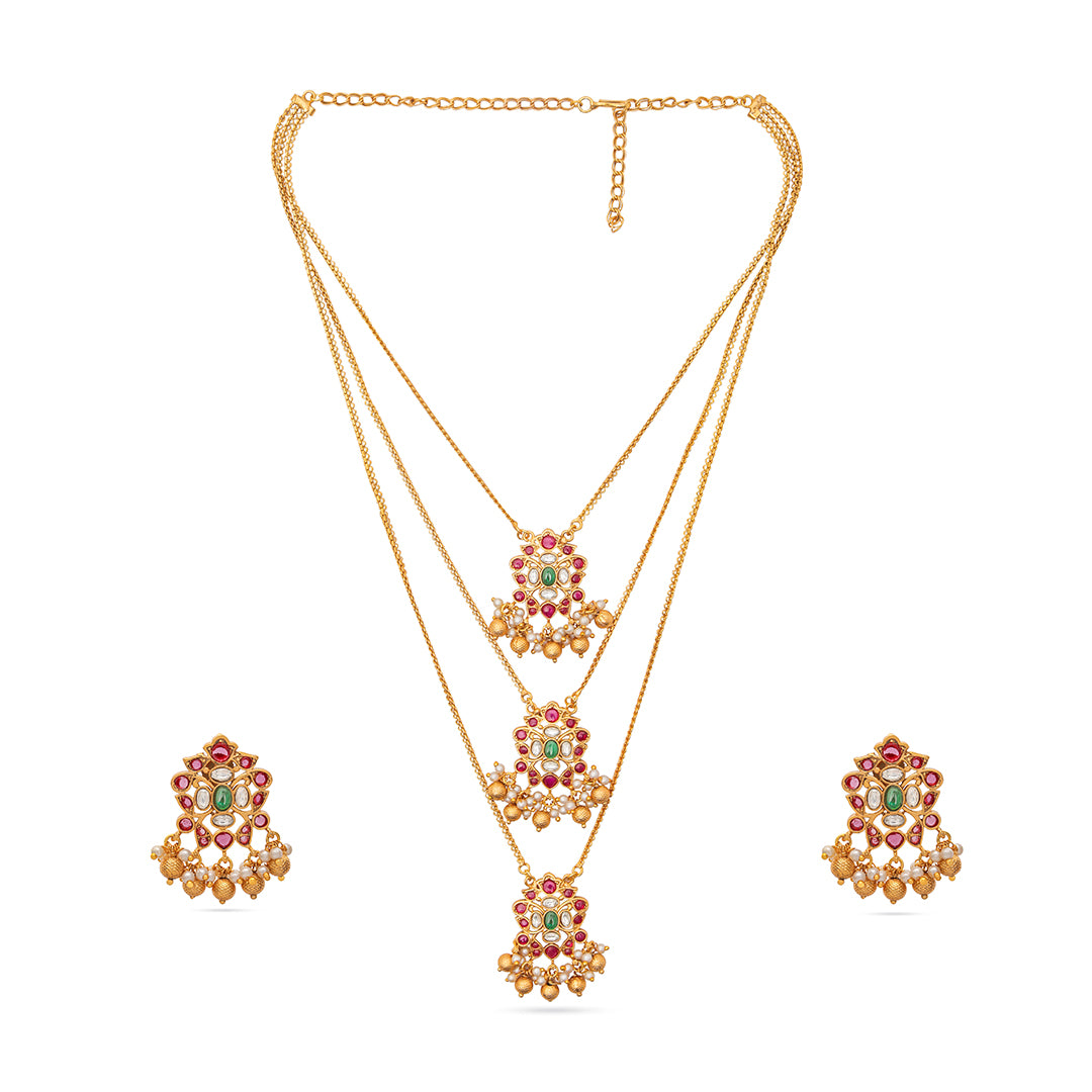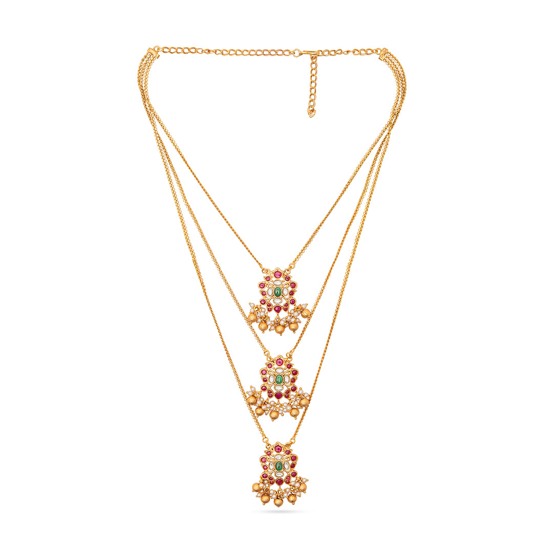 Drape yourself in timeless grace with the Layered Pendant Necklace from our Treasure Collection. This exquisite triple-layered necklace features three...