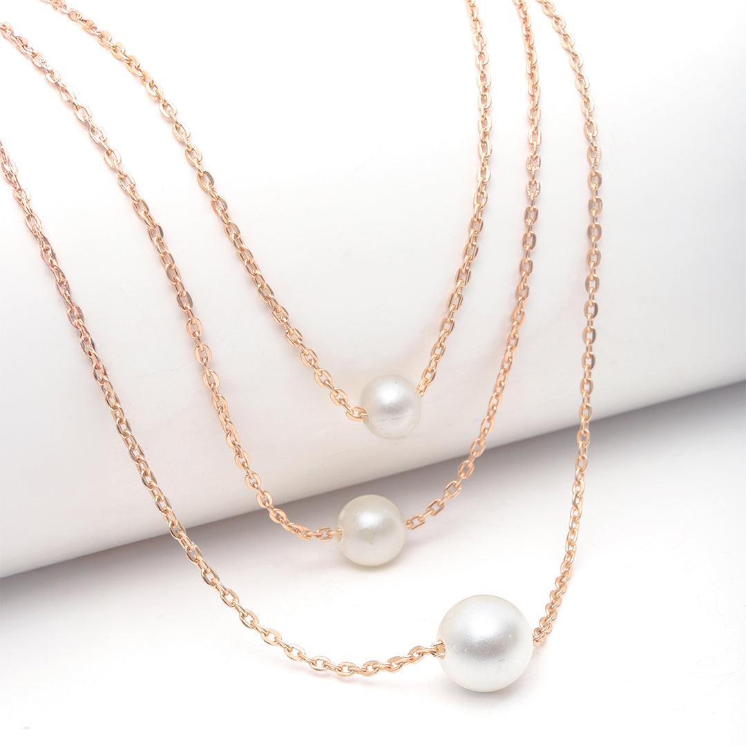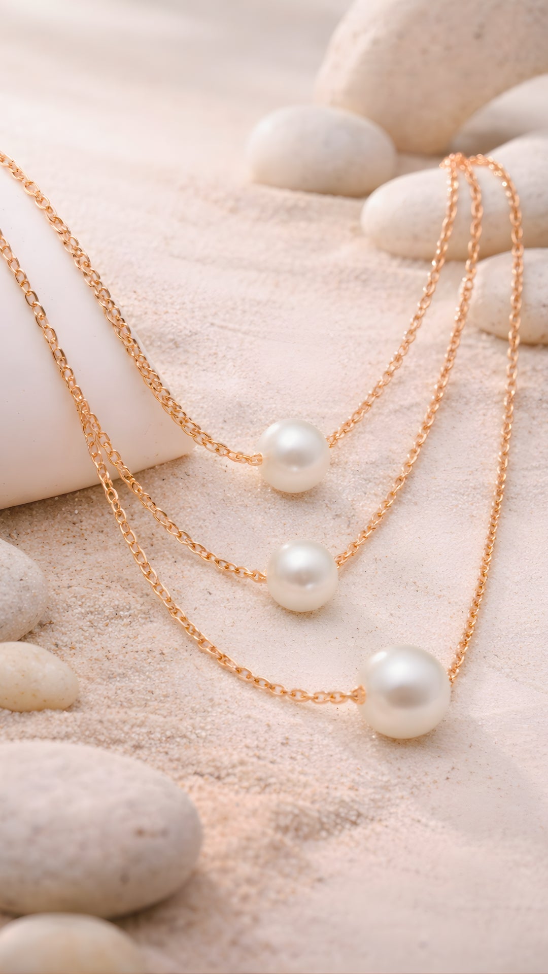 Simplicity meets luxury in the Lia Trio Pearl Drop Chain. Three floating pearls are elegantly spaced across a dainty gold...