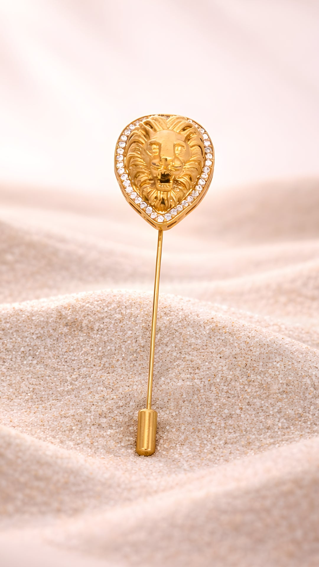 Infuse timeless elegance into your outfit with the Maharaja Shield Stick Brooch. Featuring a lion-embossed gold crest surrounded by delicate...
