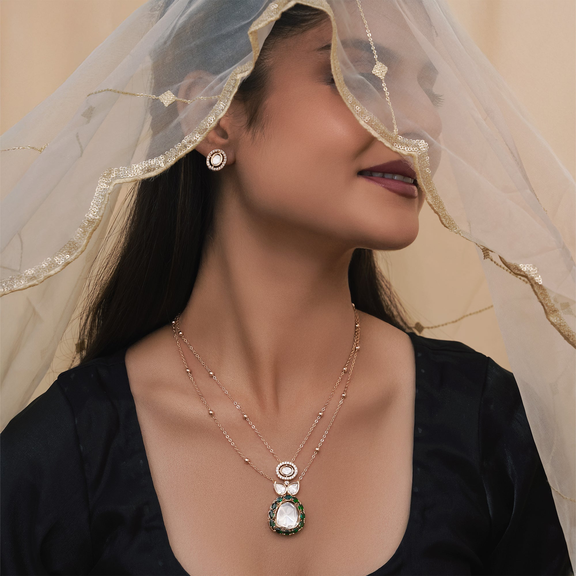 The Majestic Emerald Noor Set is a classic kundan necklace set designed to reflect royal Indian elegance. Featuring a radiant...