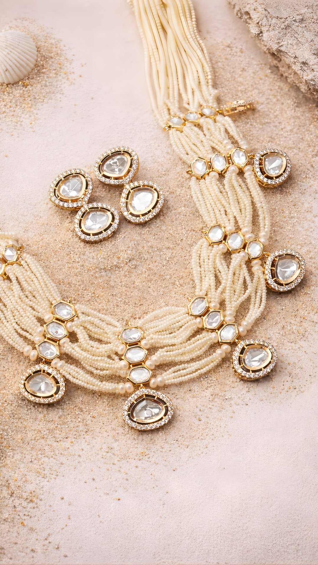 Step into timeless royalty with the Noor-E-Mahal set from our Majestic Collection. This exquisite bridal necklace set features a multi-layered...