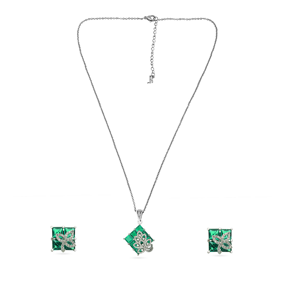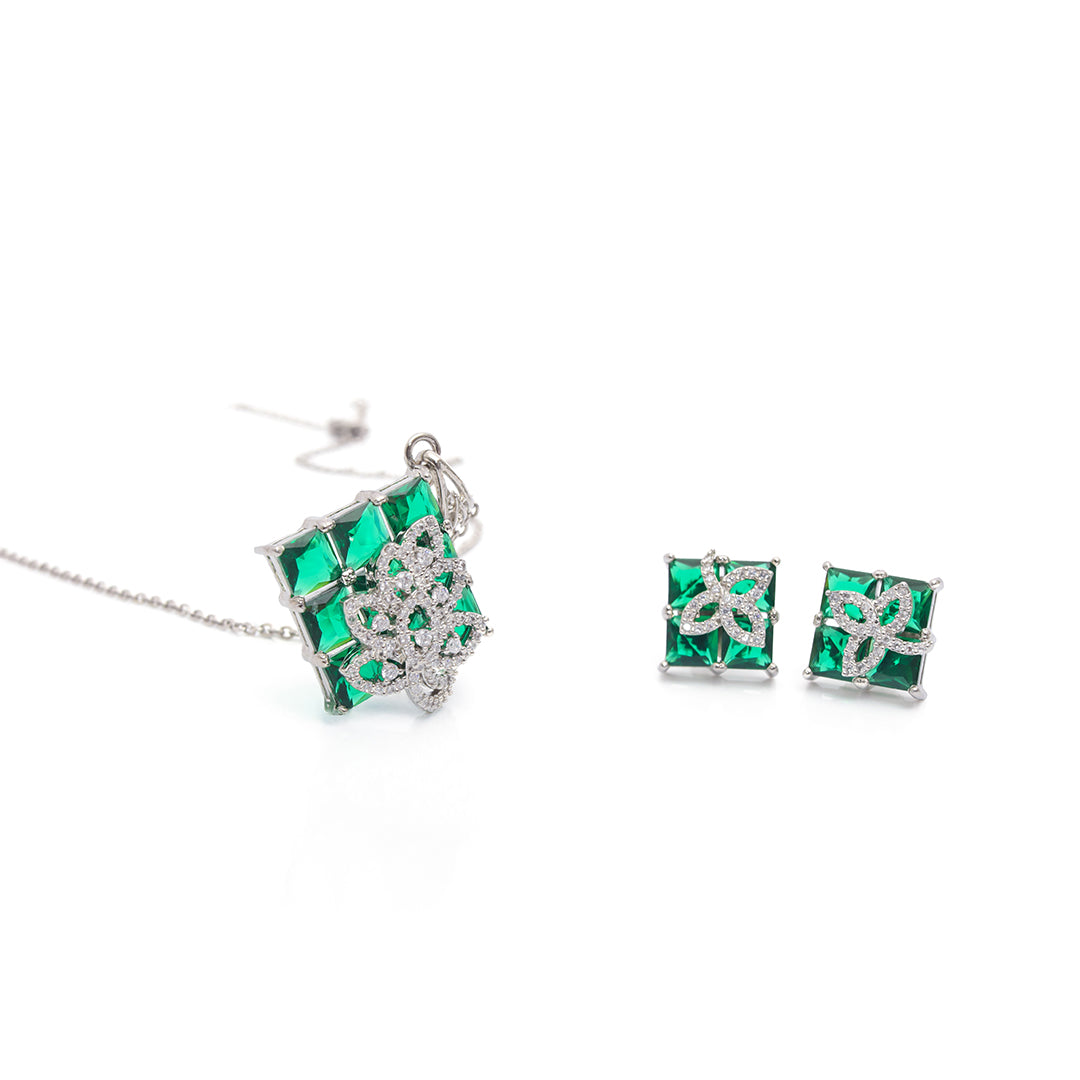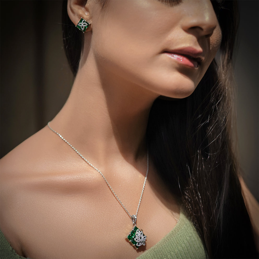 Eira Set – Green Crystal Pendant & Earrings