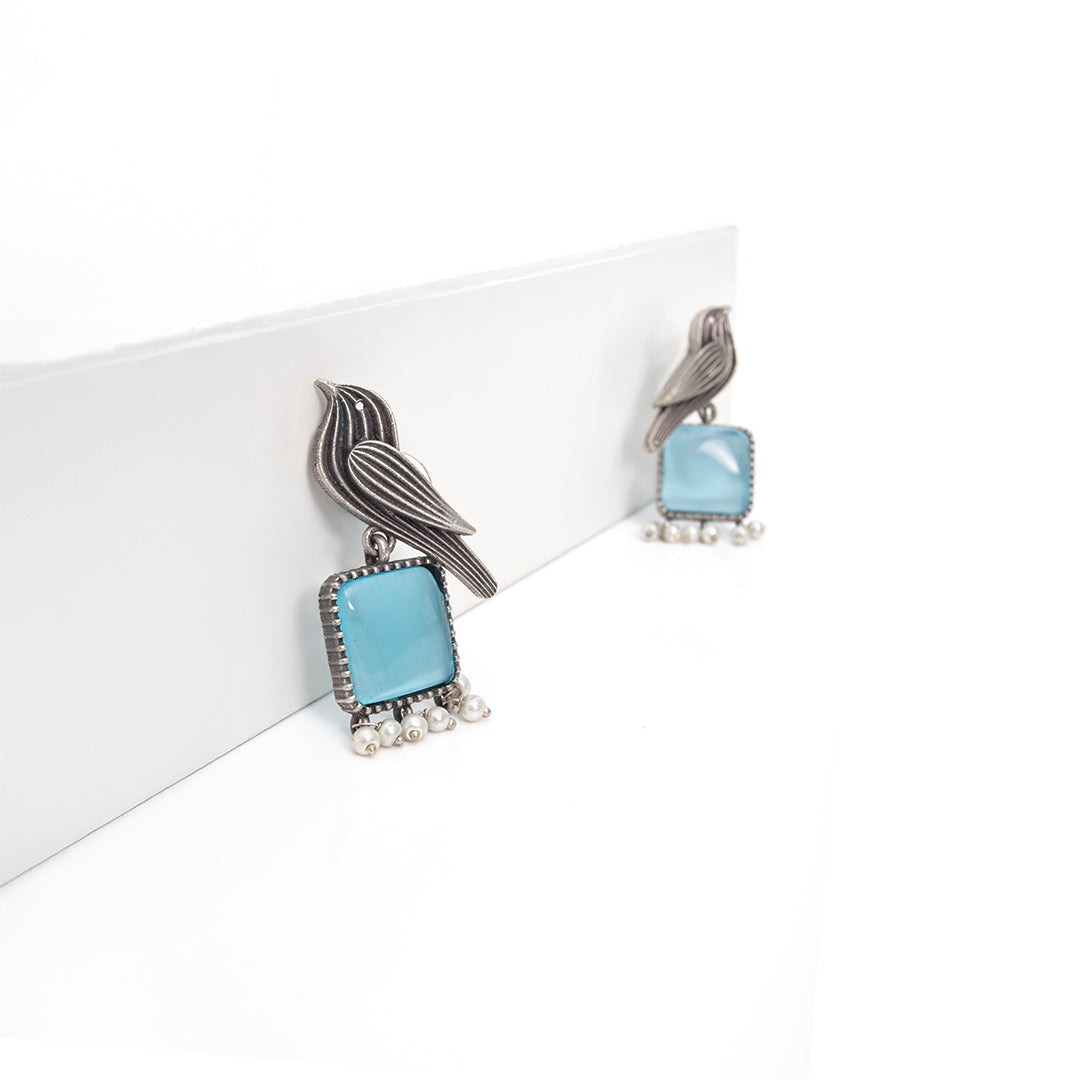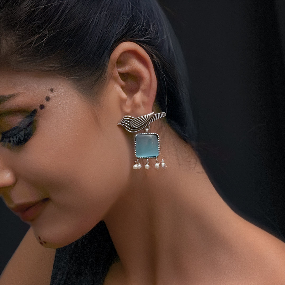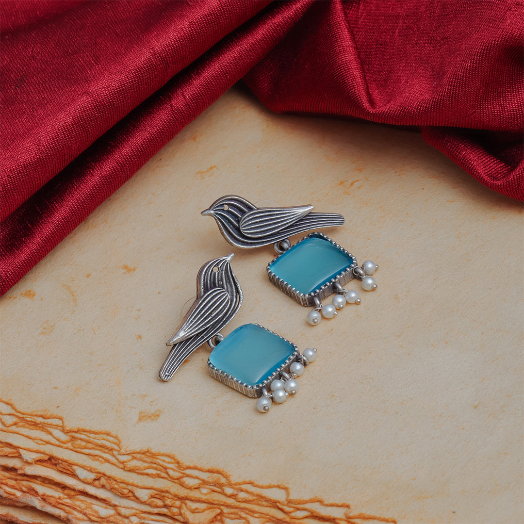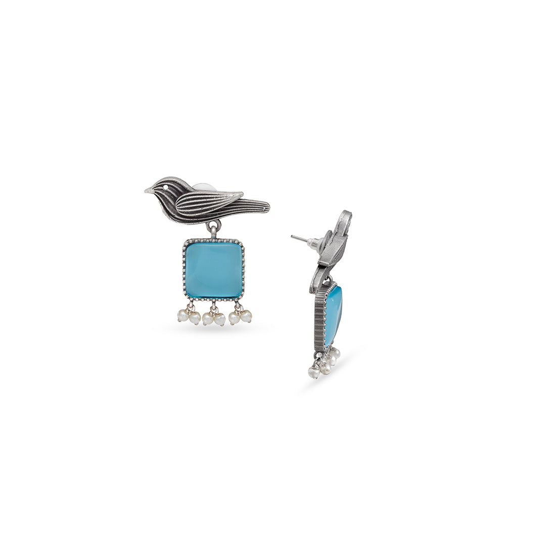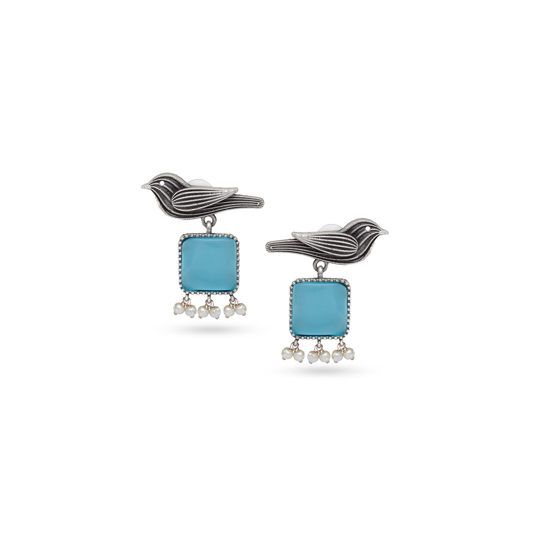 Charming and serene, the Morni Sky Earrings take inspiration from open skies and chirping birds. The oxidized bird motif rests...