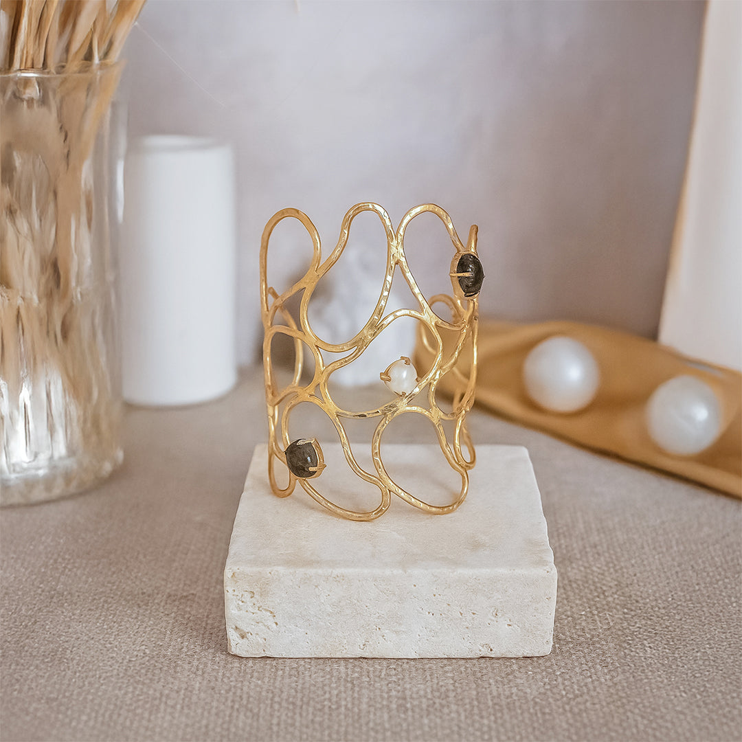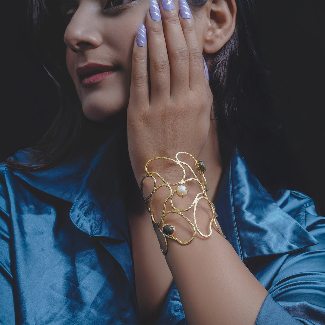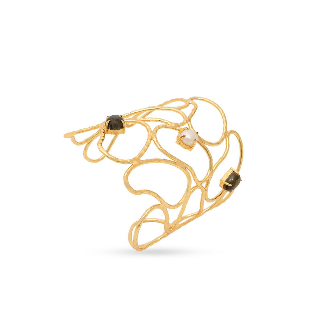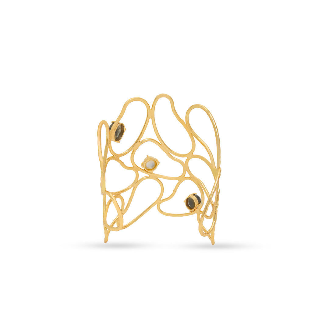The Mystic Aura Cuff is designed like wearable art – an openwork design with abstract curves and gemstone accents. This...