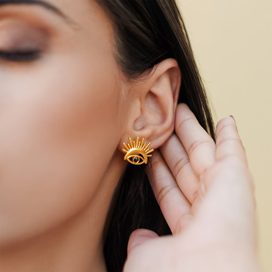 Add subtle sparkle to your style with our Nazarbattu Earrings, designed to protect and impress. These dainty earrings combine trend...