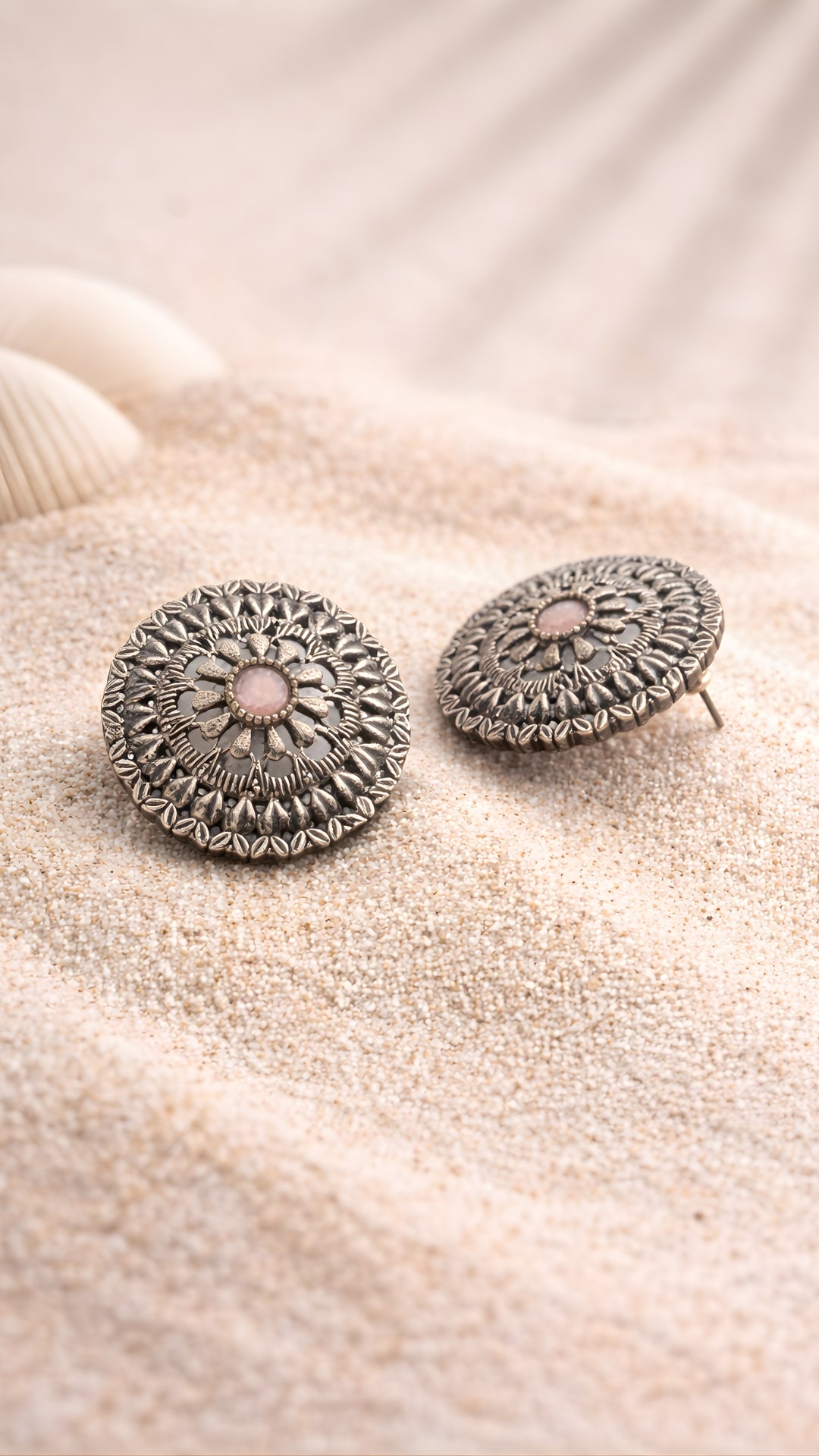 Intricate, regal, and rooted in ancient symbolism—the Padma Chakra Studs are a timeless blend of floral grace and spiritual geometry....