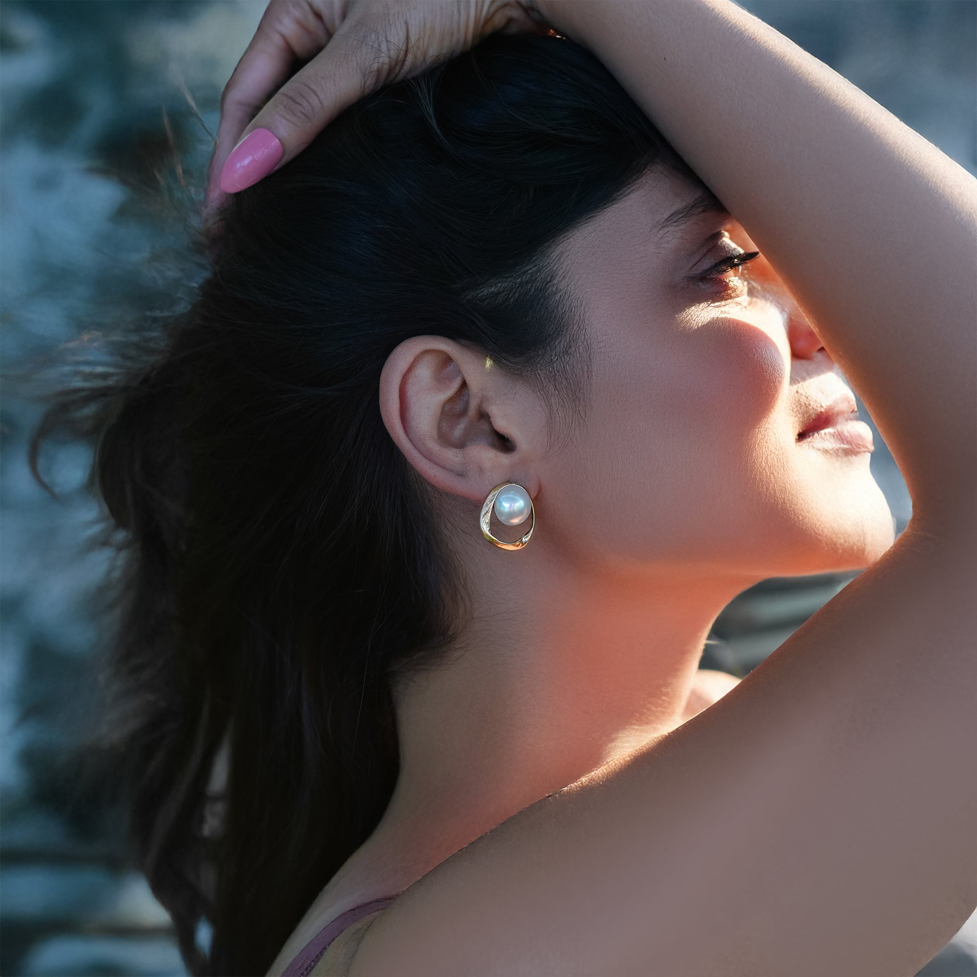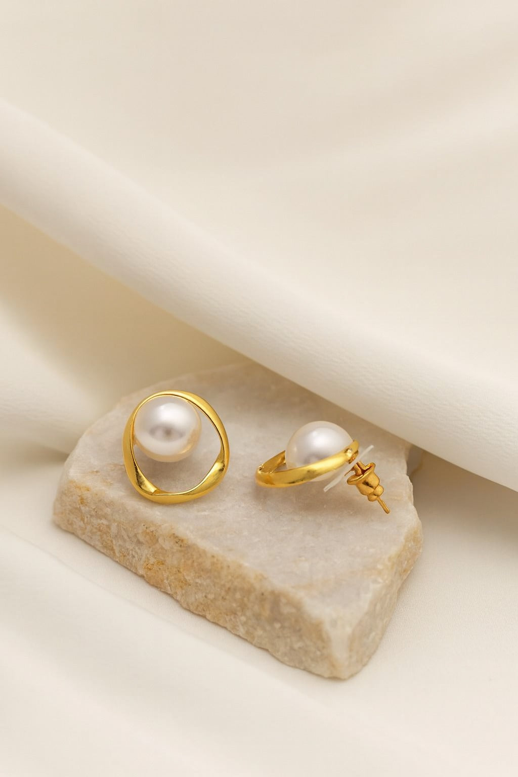 The Pearl Aura Studs are a dainty blend of modern minimalism and classic pearl beauty. Their uneven organic gold frame...