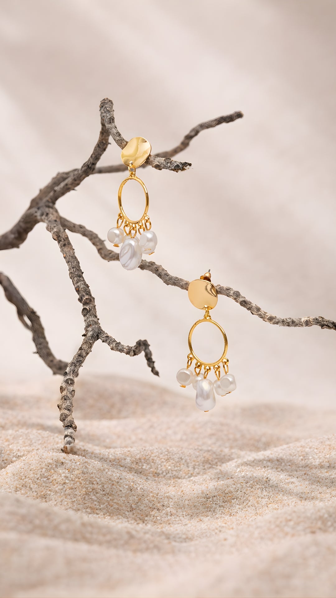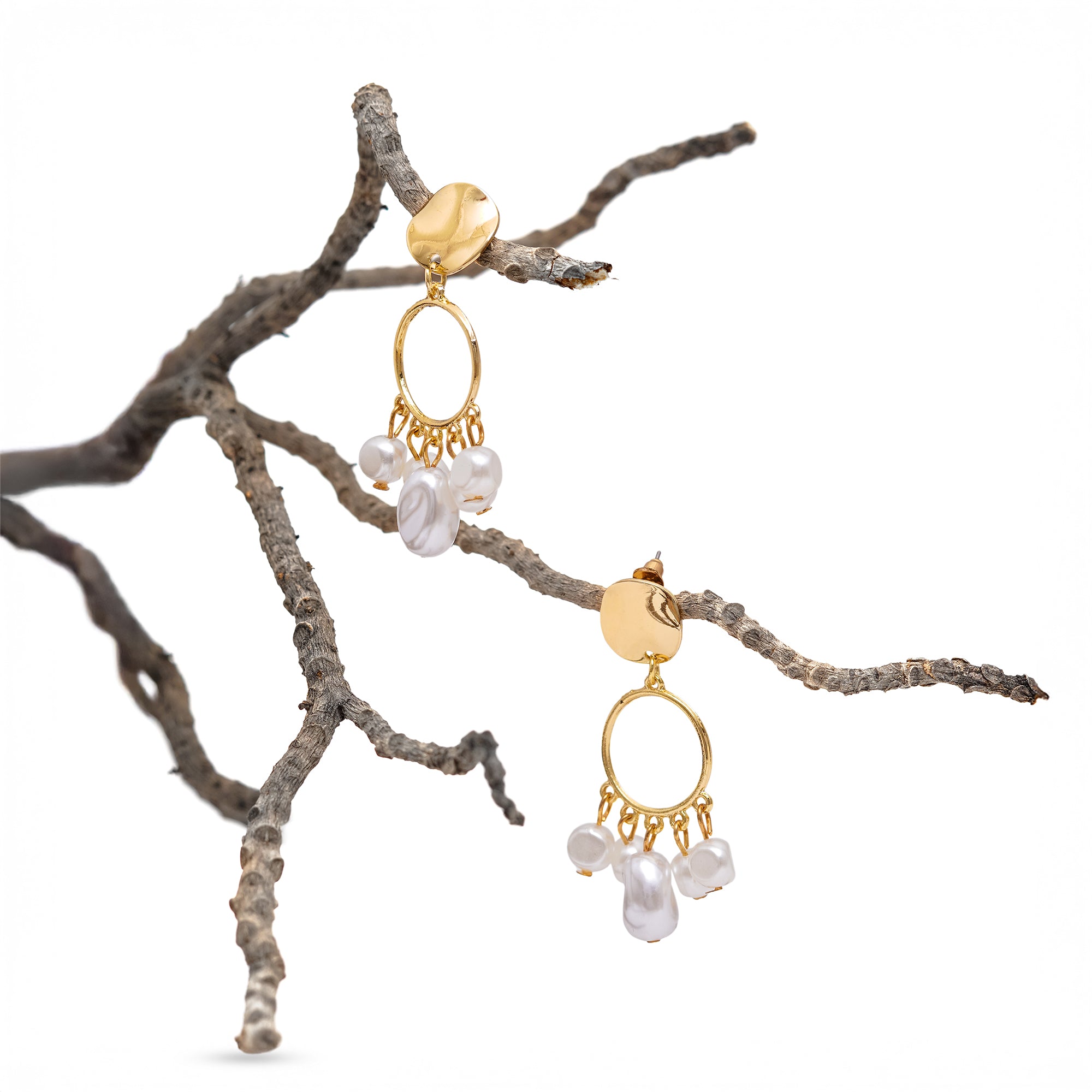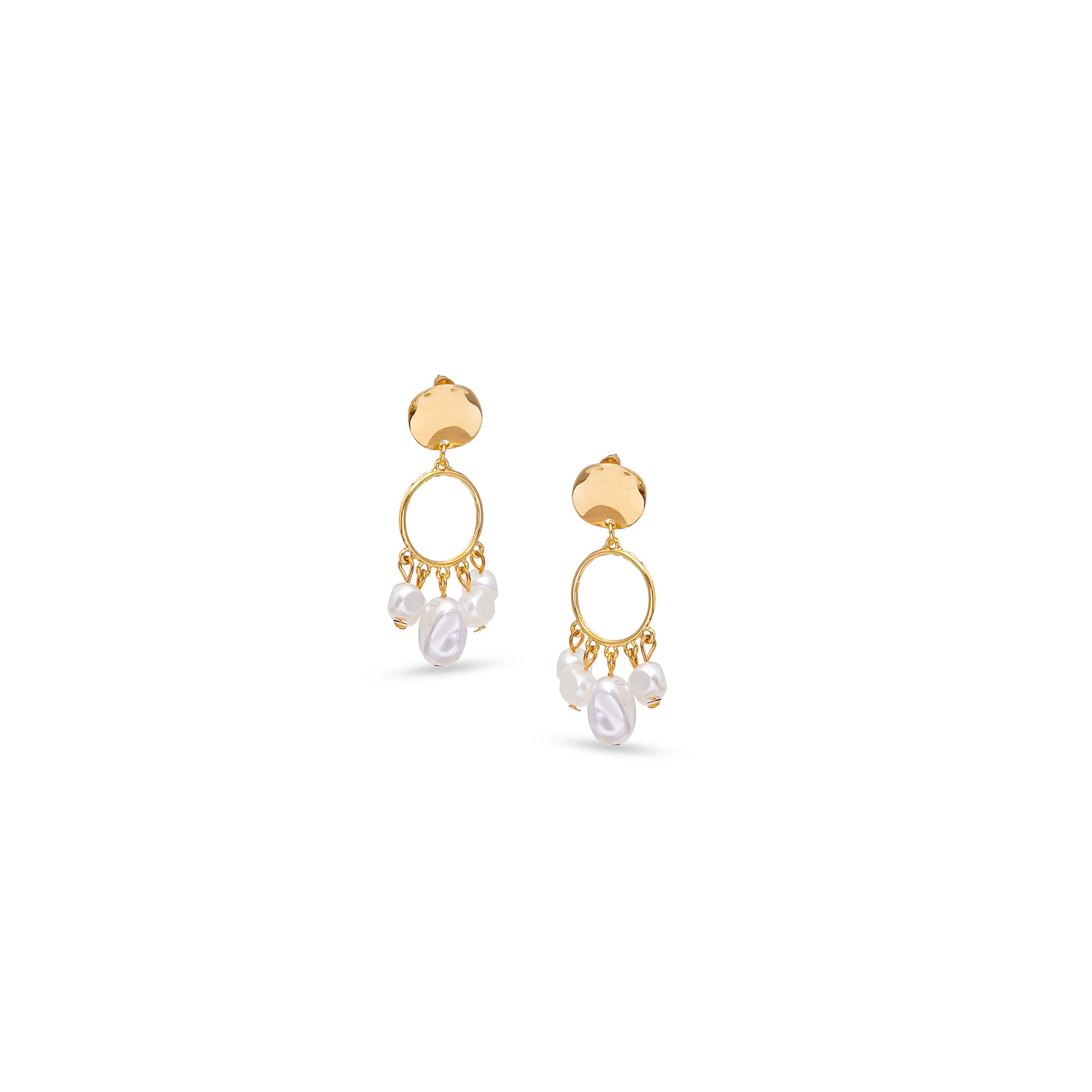 Elegant and graceful, the Pearl Halo Drop Earrings feature a soft gold-toned base paired with a circular drop design and...