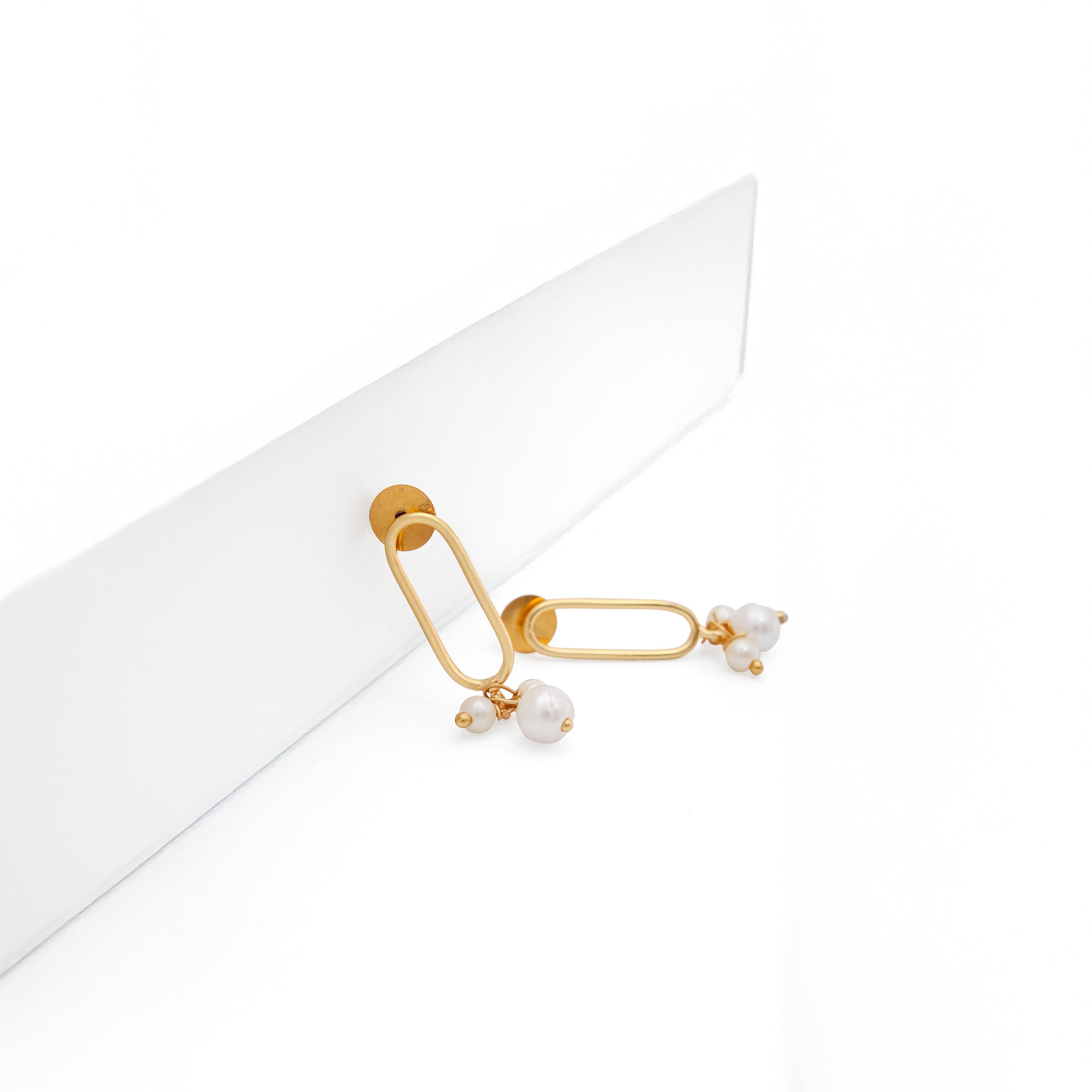 Crafted as part of the Mukta Collection, these earrings combine flowing oval links with soft pearl drops. The result is...