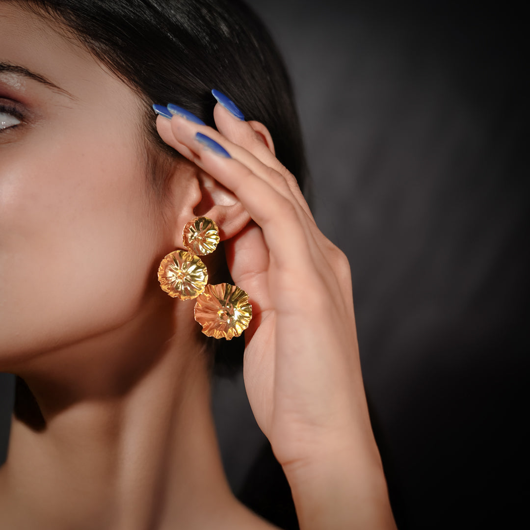 Inspired by blooming flowers, these lightweight drop earrings feature a graceful petal design. Perfect for adding charm to your casual...