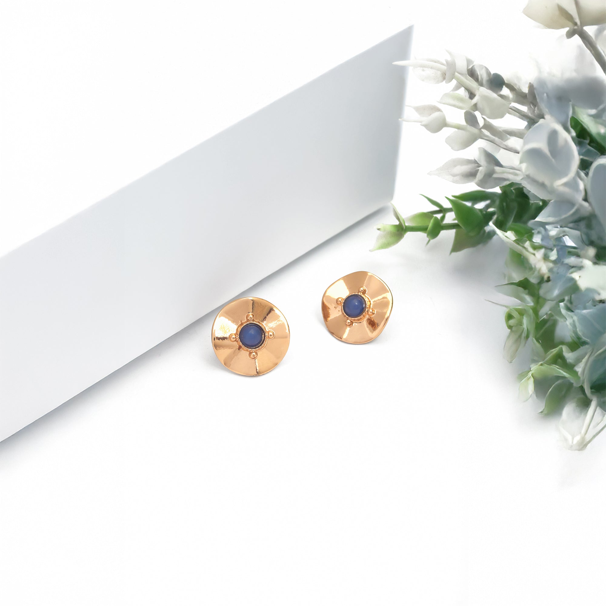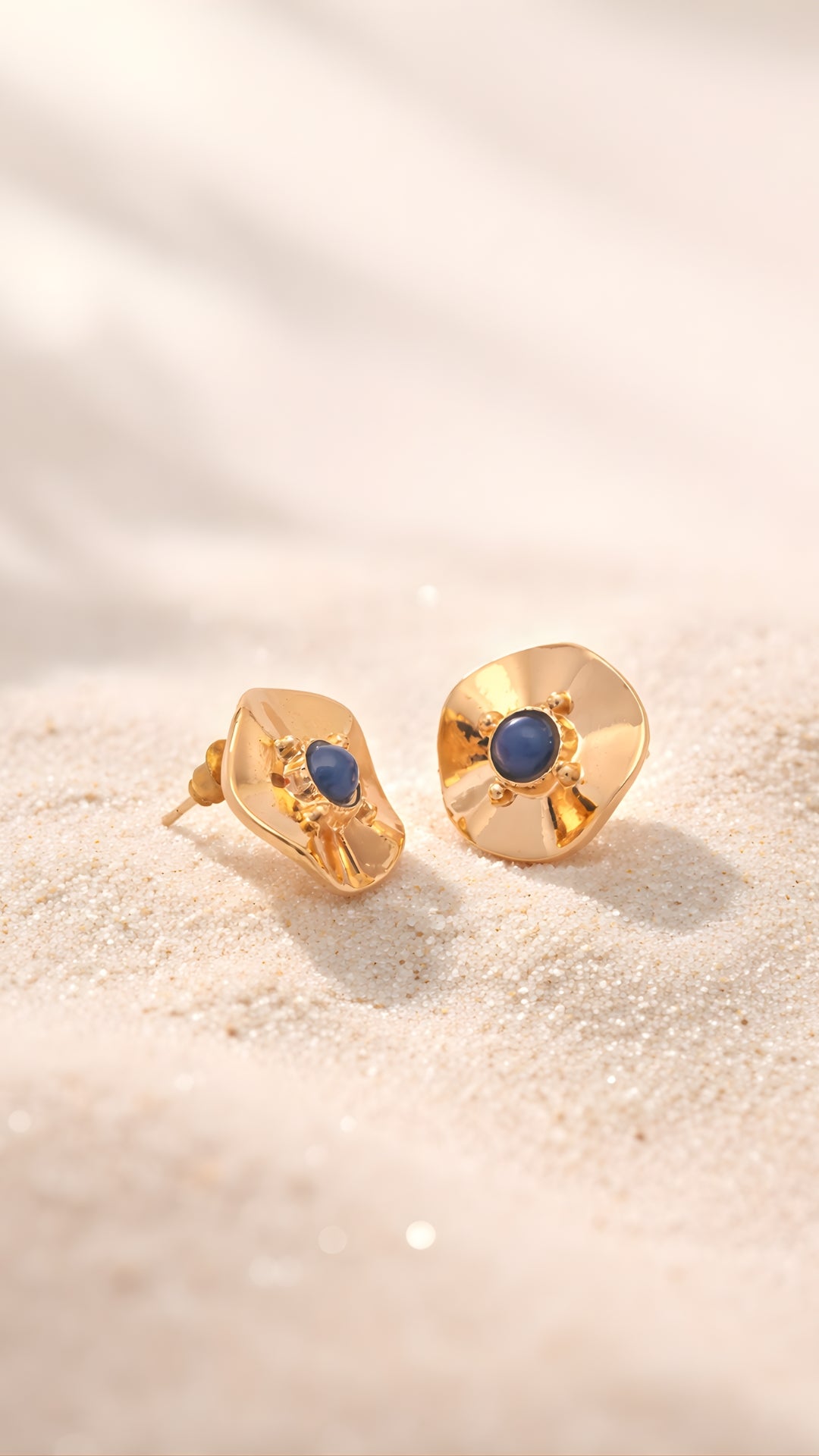 Bold structure meets artistic detailing in the Rage Azure Shield Stud Earrings. Designed with an abstract shield-like gold base and...