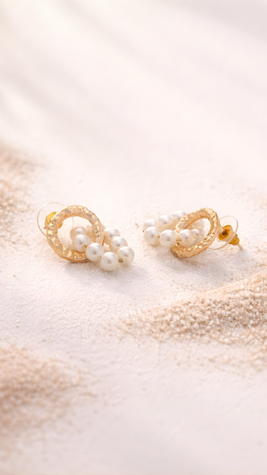 Grace meets power in the Rage Pearl Orbit Stud Earrings. Designed with a textured gold circular frame embracing a cluster...