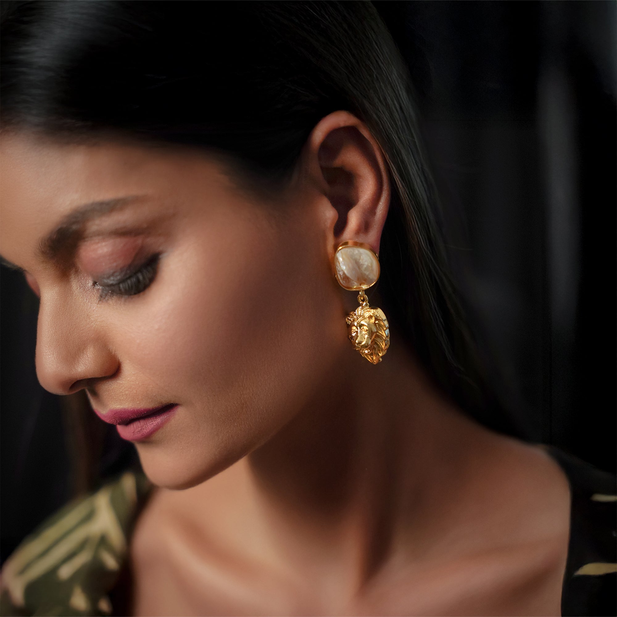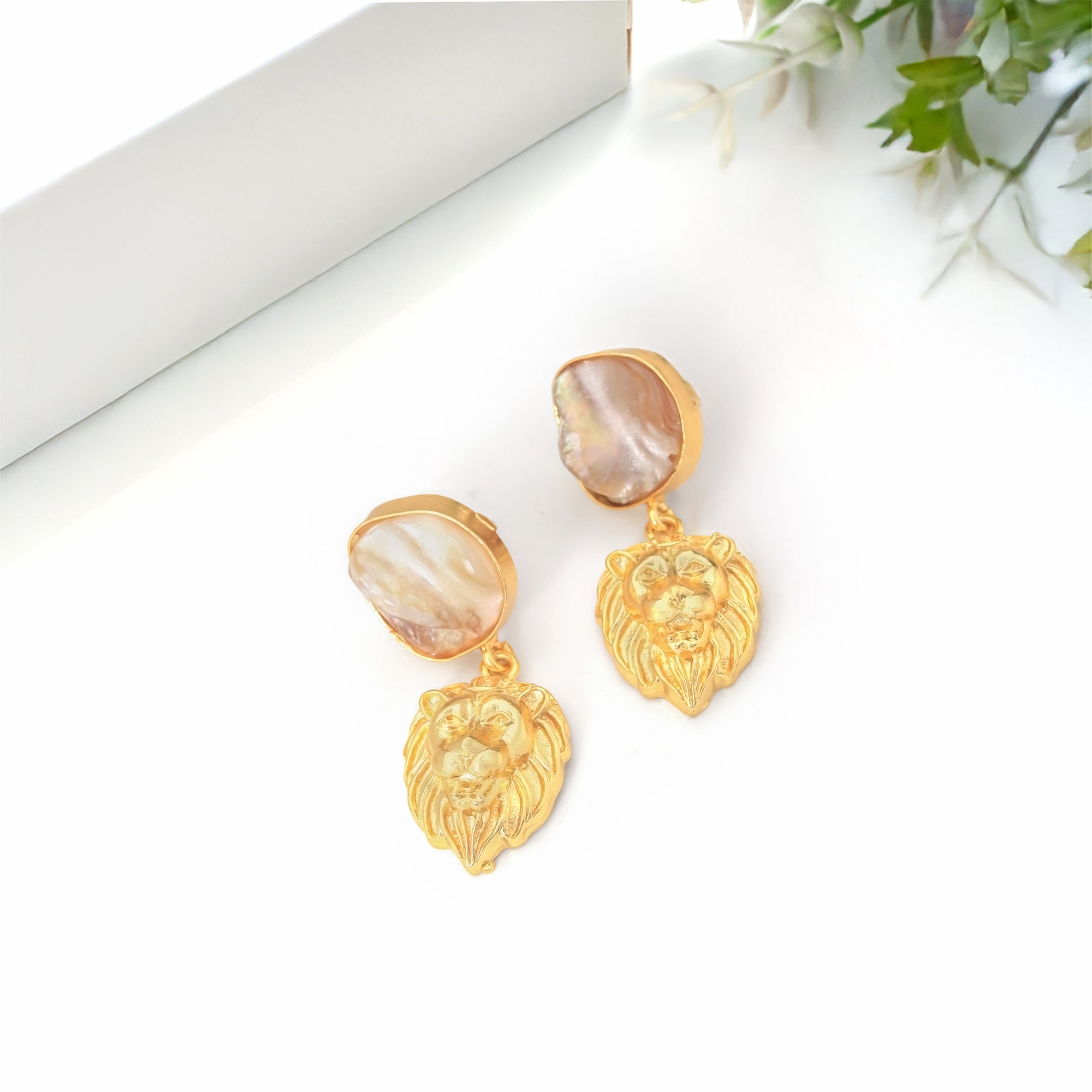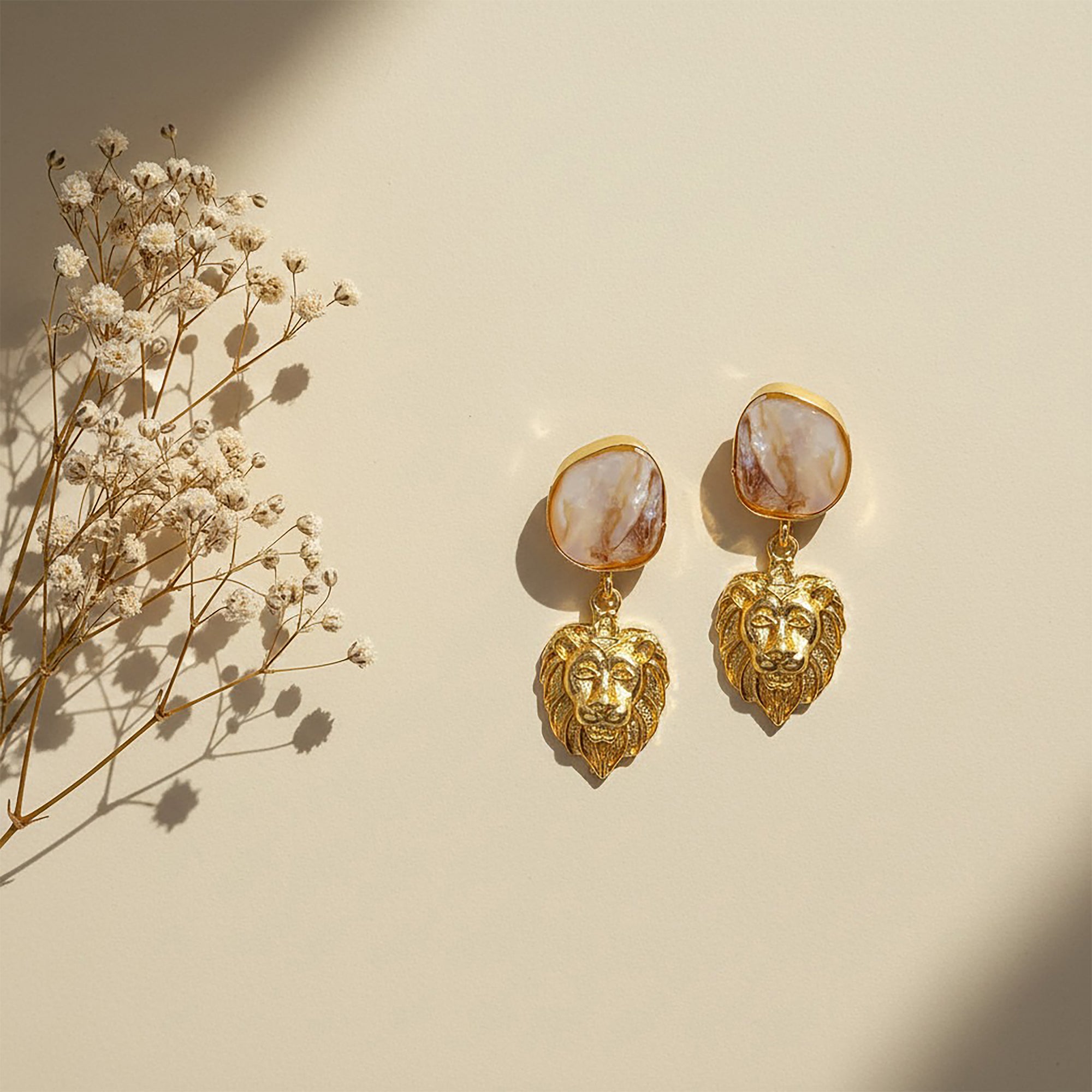 The Regal Roar Earrings symbolize confidence, power, and poise. Designed with a captivating lion motif and a soft pearl-like stone,...