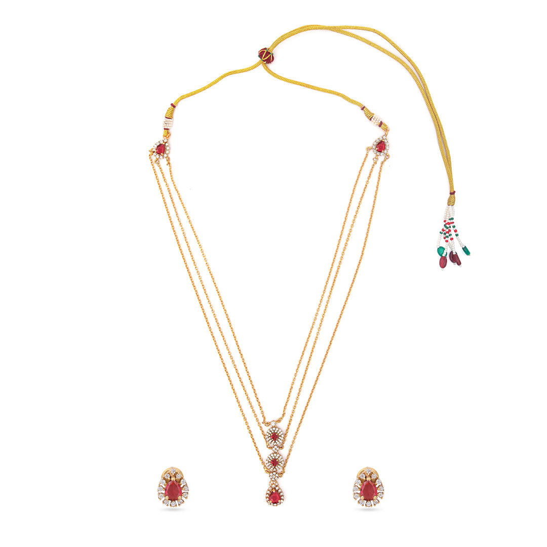 Ruby Grace Pendant Set is a premium imitation jewellery piece designed to reflect timeless beauty. Featuring a deep ruby-red teardrop...