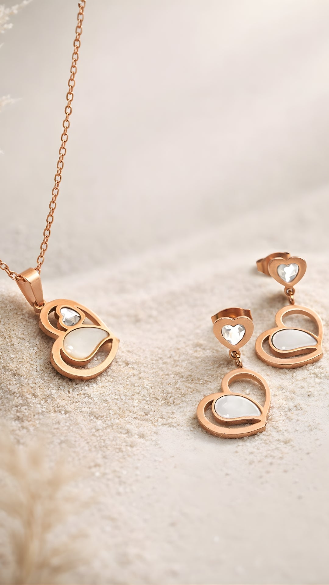 Serenita Set β Twin Heart Rose Gold Necklace & Earrings