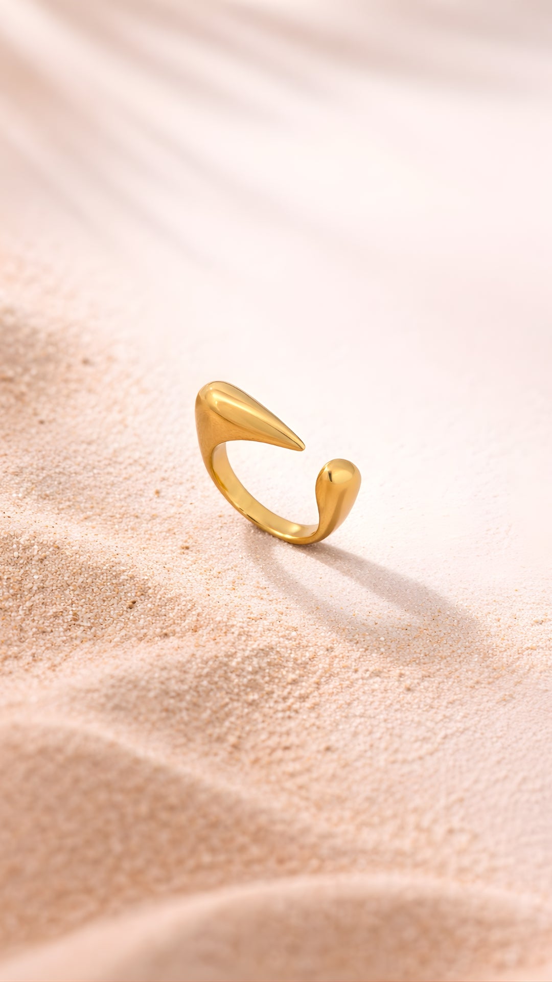 SEO: modern open ring, adjustable gold ring, minimal sculptural jewellery, sleek statement ring