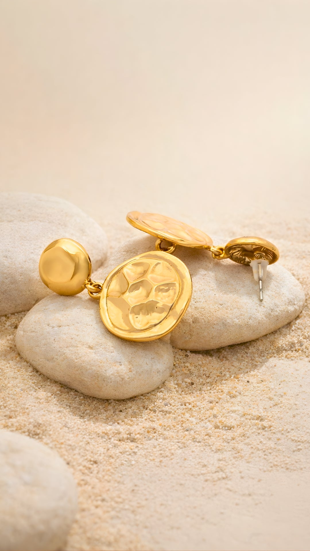 Chic meets classic in the Solis Dots earrings from our Mallet Collection. These elegant textured gold drop earrings feature a...