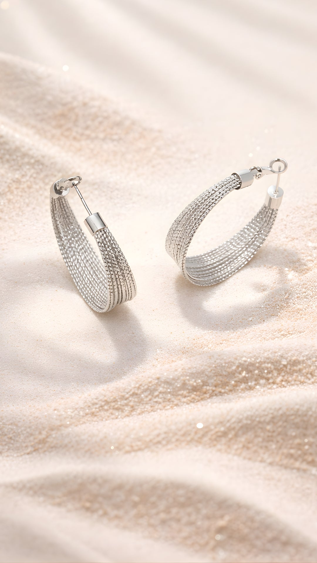 Bold yet balanced, the Steel Mesh Silver Hoops bring a strong textured look with a layered mesh-style finish. Designed for...
