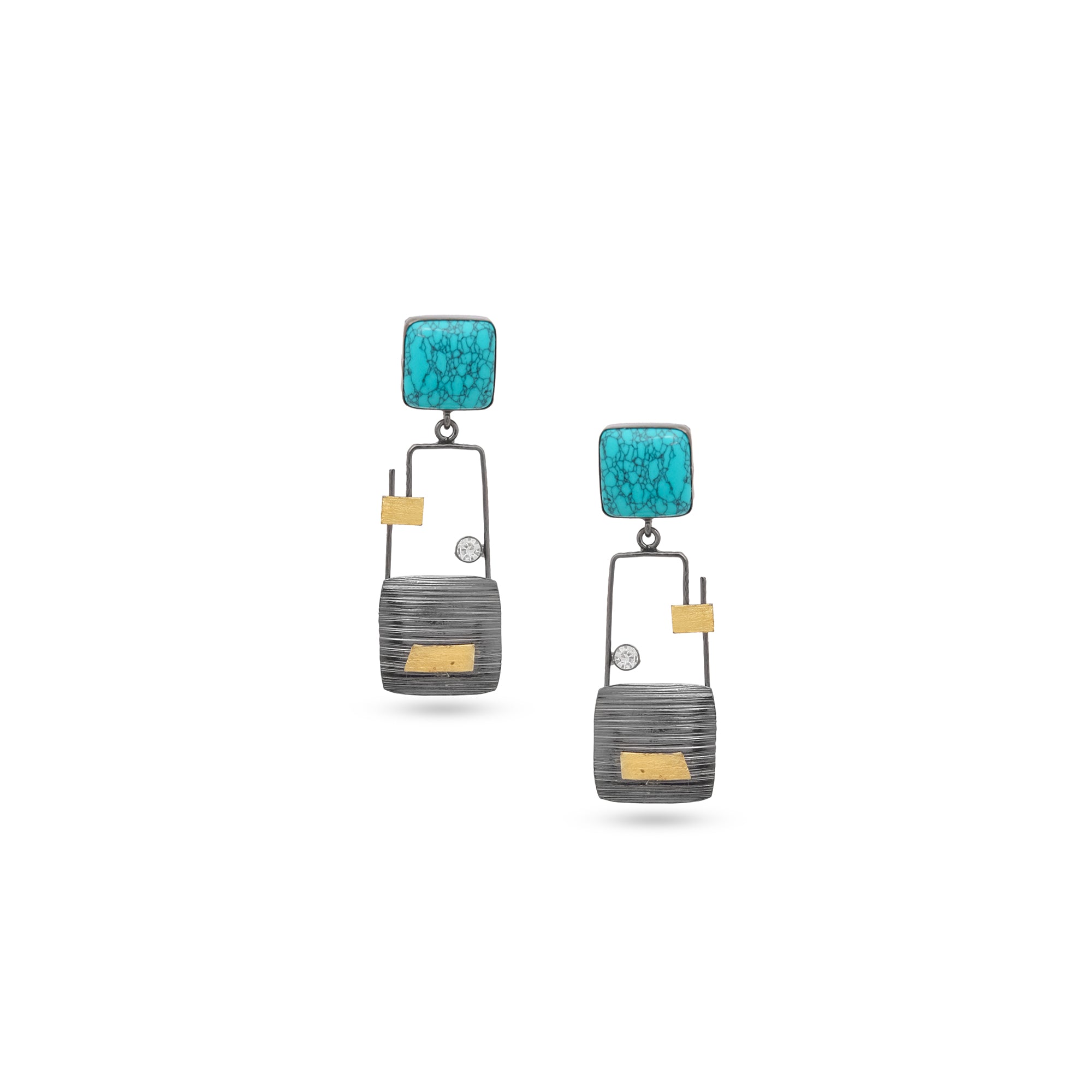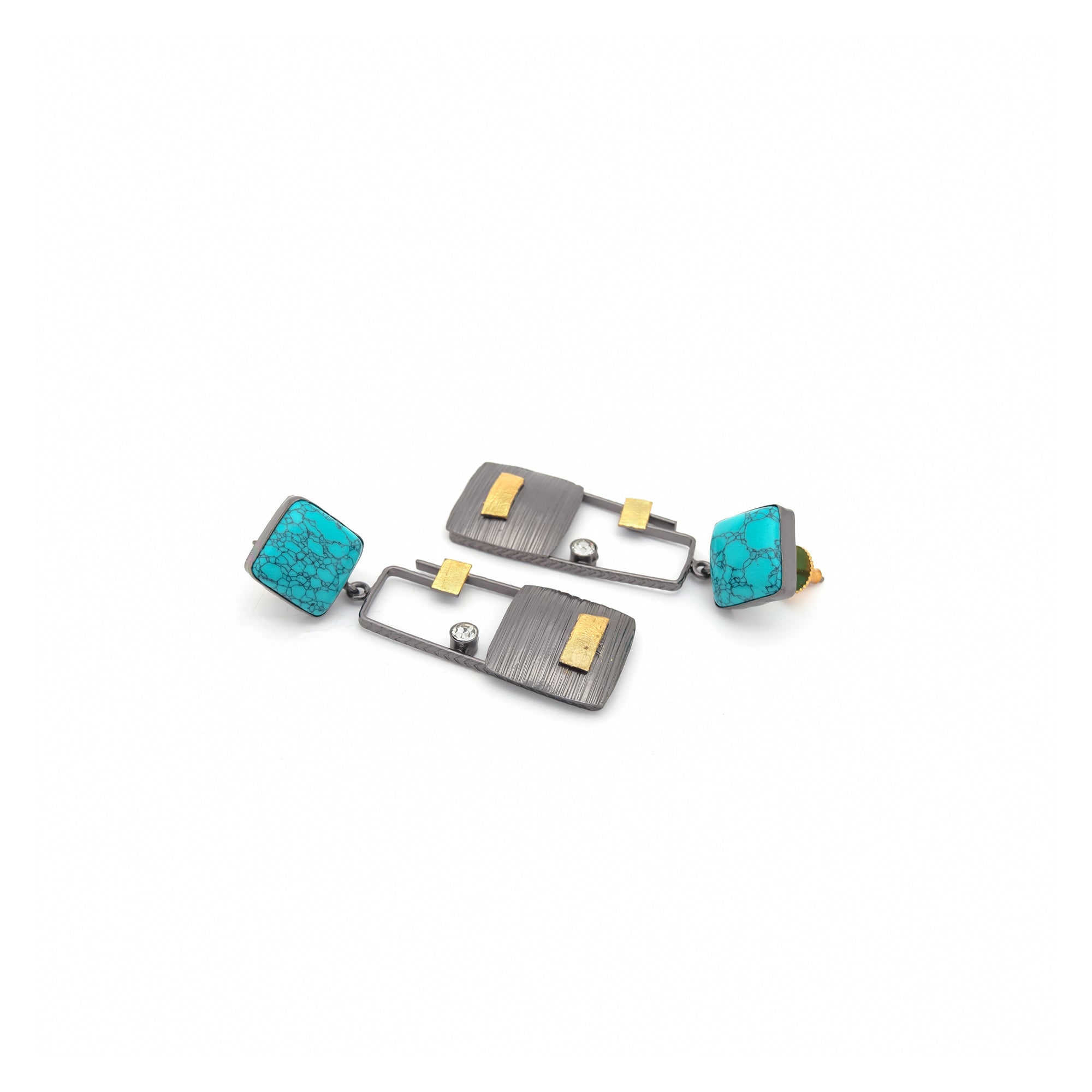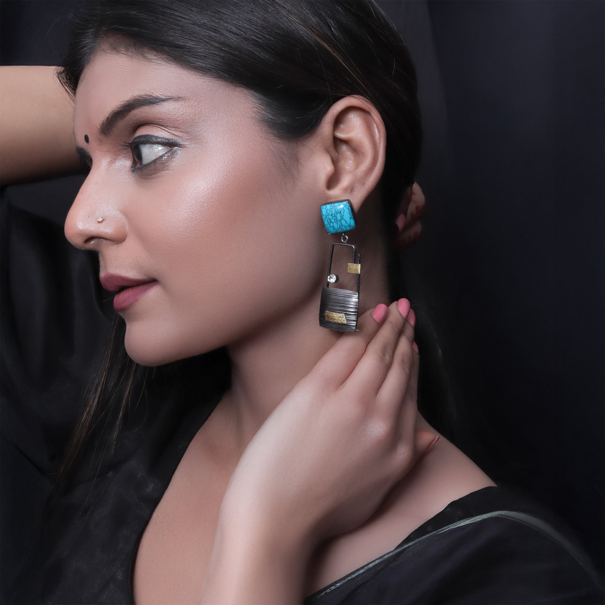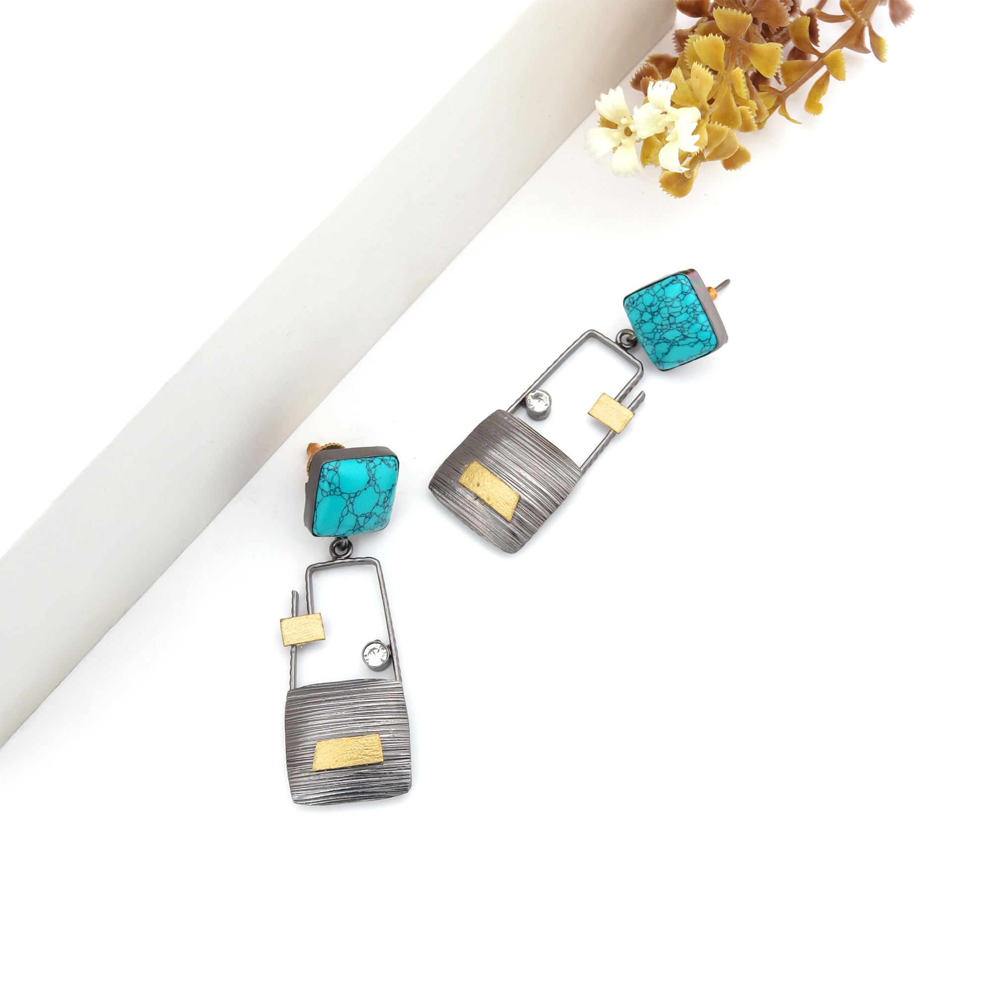 Striking turquoise stones framed in oxidised metal with brushed-gold accents. Bold, structured, and perfect for adding a pop of colour...